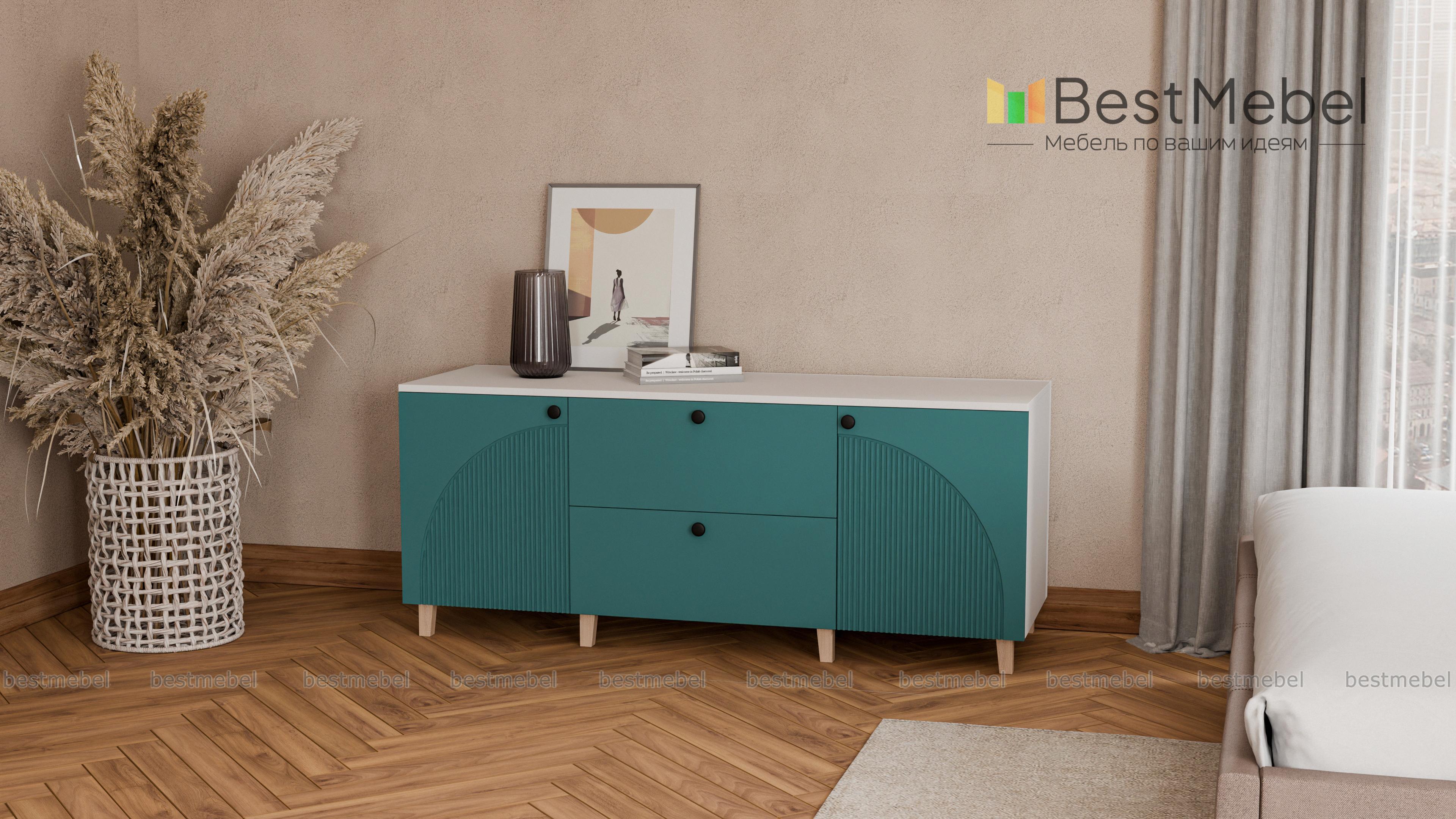 Комод Вивьен 4 BMS с высокими деревянными ножками поможет вам организовать хранение вещей и украсит интерьер. Широкий современный комод оборудован парой распашных секций с полками и двумя вместительными ящиками в центральной части. Прочный корпус изготовлен из ламинированной плиты, которая выдерживает большие нагрузки, а для фасада использован МДФ со стильным рельефом. Купить комод Вивьен 4 BMS приглашаем в наш интернет-магазин, по желанию изменив цвет и размеры.