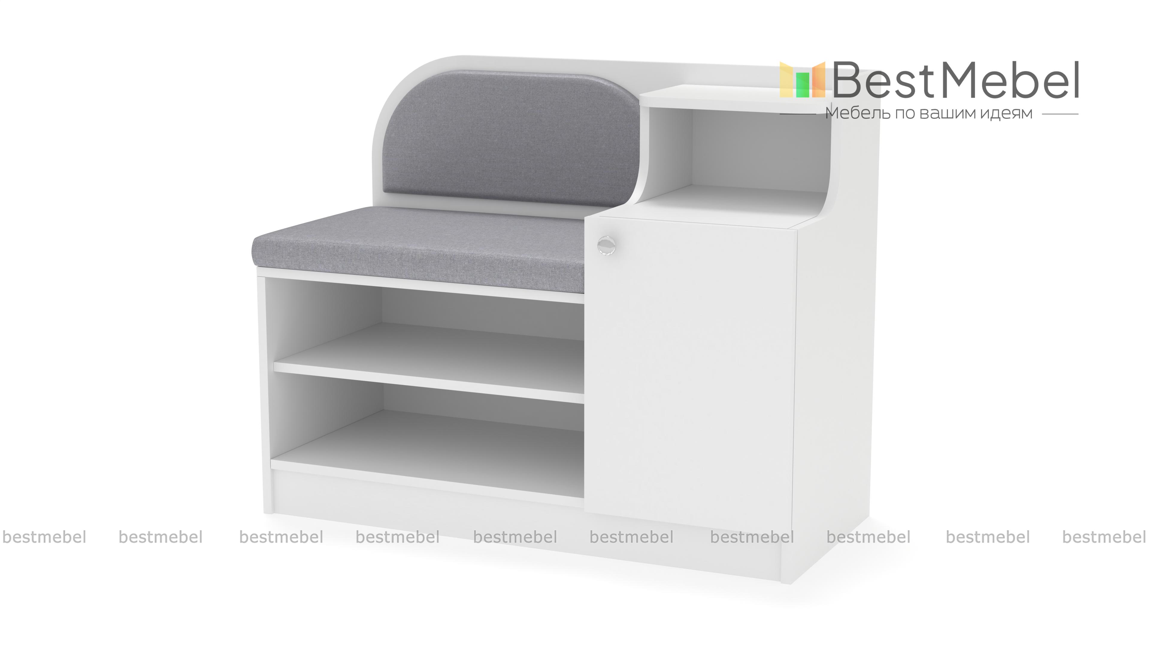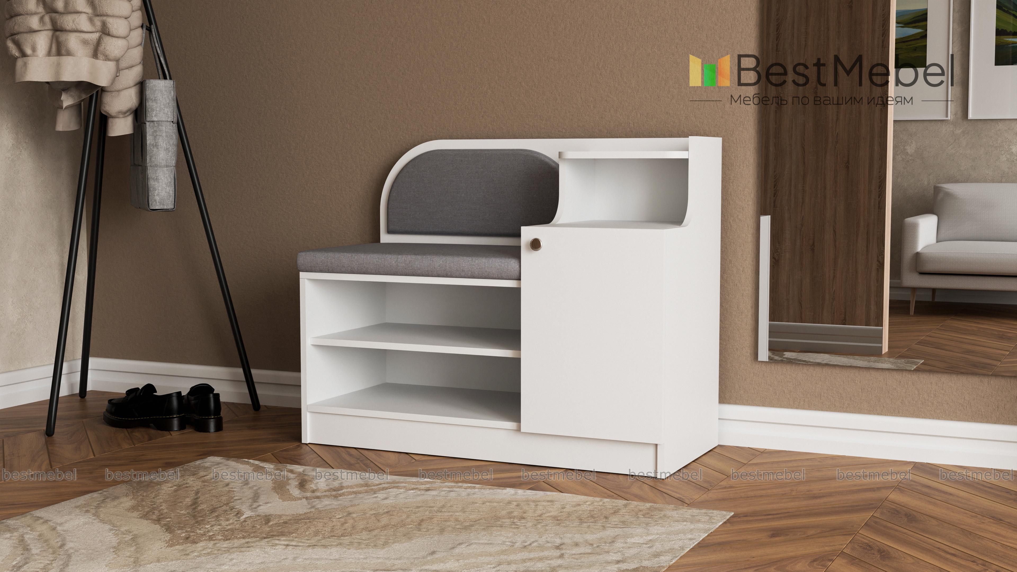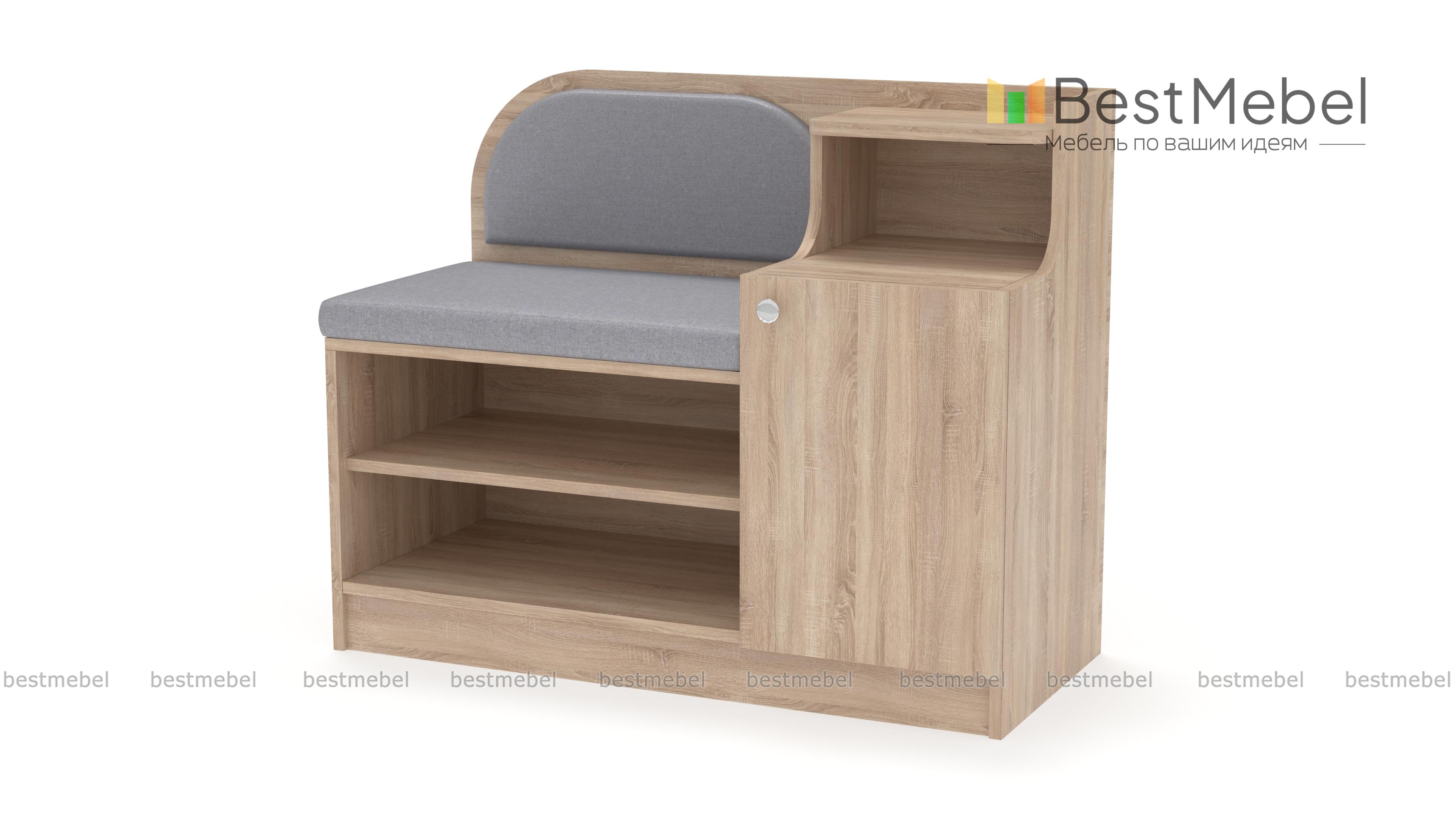 Обувница Меренга BMS поможет вам не только бережно разместить обувь, уходовые средства и бытовые мелочи, но и с комфортом обуться. Многофункциональная модель оборудована открытыми обувными полками, распашным отделением, нишей и сиденьем с высокой скругленной спинкой. Обувница выполнена в практичных темных тонах, на сиденье располагаются мягкие накладки в износостойкой ткани. Купить обувницу Меренга BMS и дополнить интерьер входной зоны практичным предметом вам поможет наш интернет-магазин.