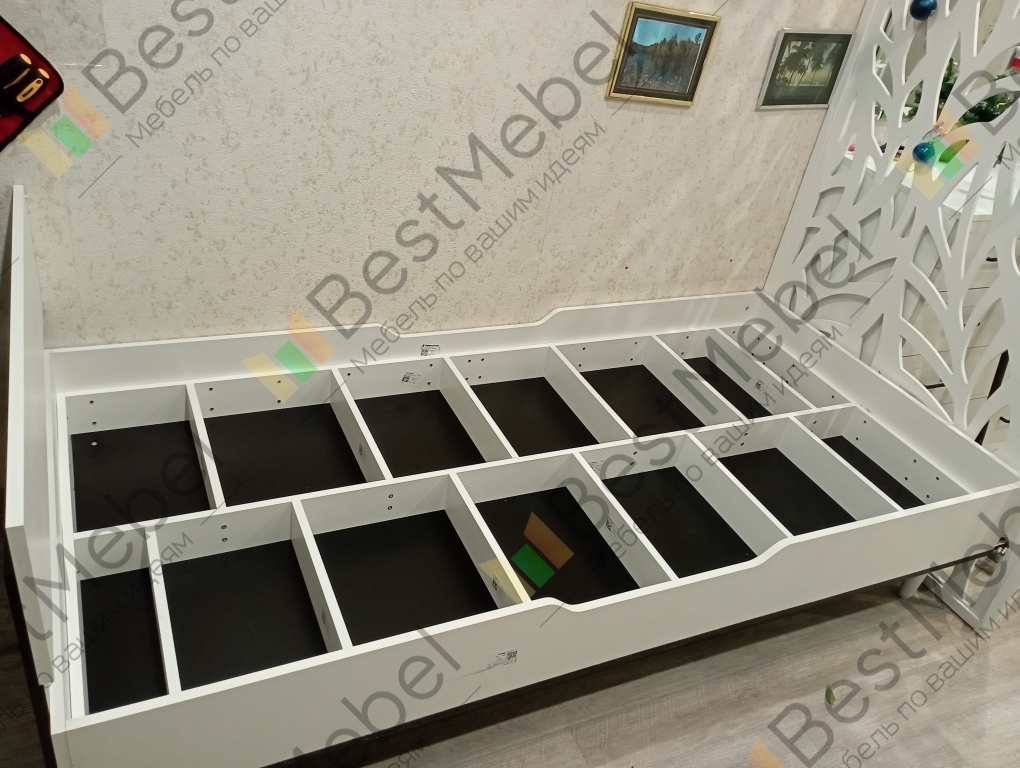 Кровать хорошая, цвета подбирала под цвет остальной мебели в комнате так же от компании Бест мебель. Массивная хоть и полуторка, шестиногая, с двойным дном. При желании туда можно что нибудь положить. Собирали сами по инструкции
