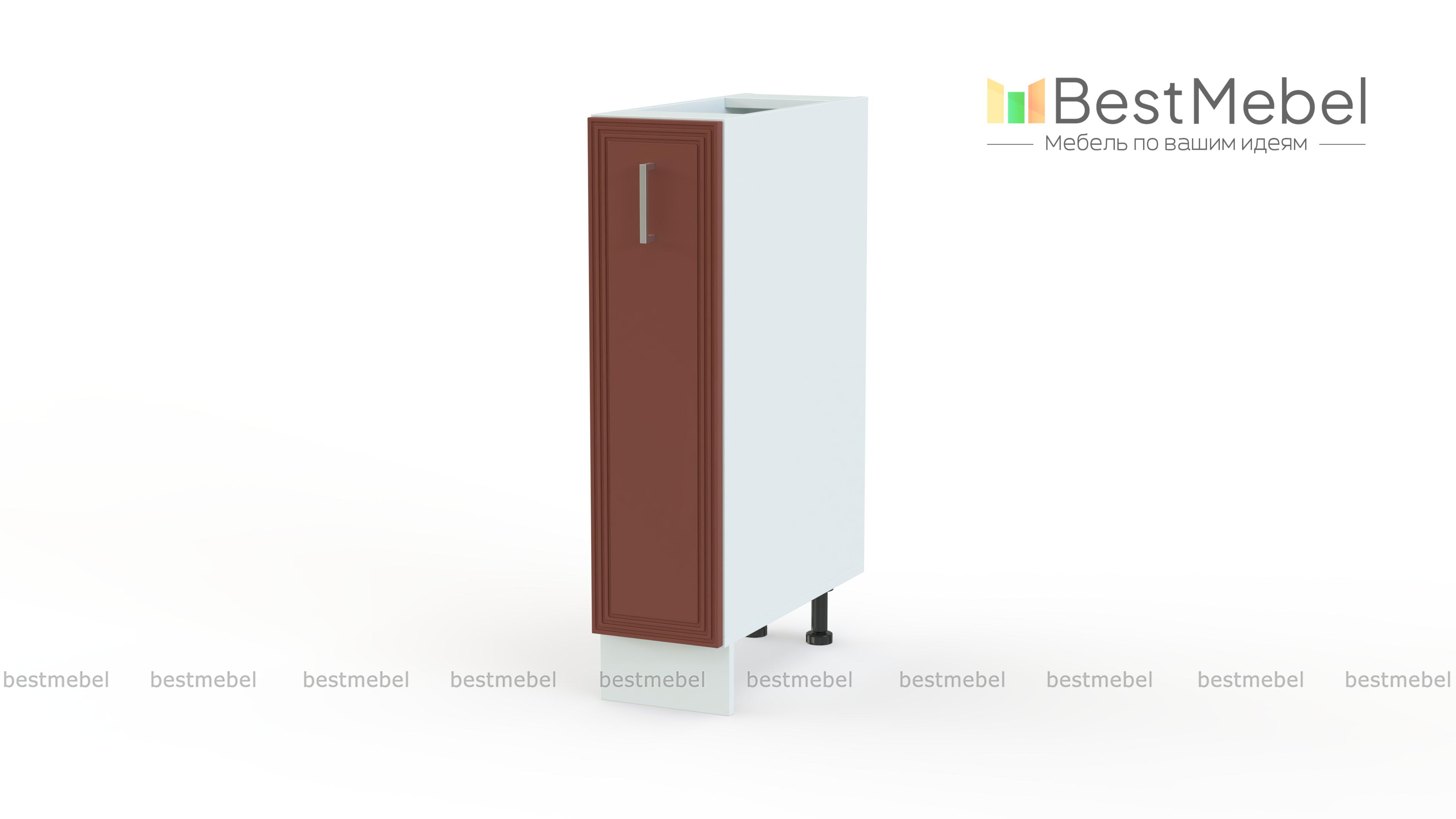 Шкаф нижний бутылочница Ника BMS отличается скромными габаритами и редкой функциональностью. Узкий шкаф гармонично дополнит напольный ряд модулей кухонного гарнитура и облегчит готовку, разместив не только напитки, но и соусы, приправы и масла в стеклянной таре. Модель с классическим фрезерованным фасадом оборудована выдвижным отделением с металлическими секциями, где все необходимое будет под рукой. Купить шкаф нижний бутылочницу Ника BMS вы сможете по выгодной цене в нашем интернет-магазине.