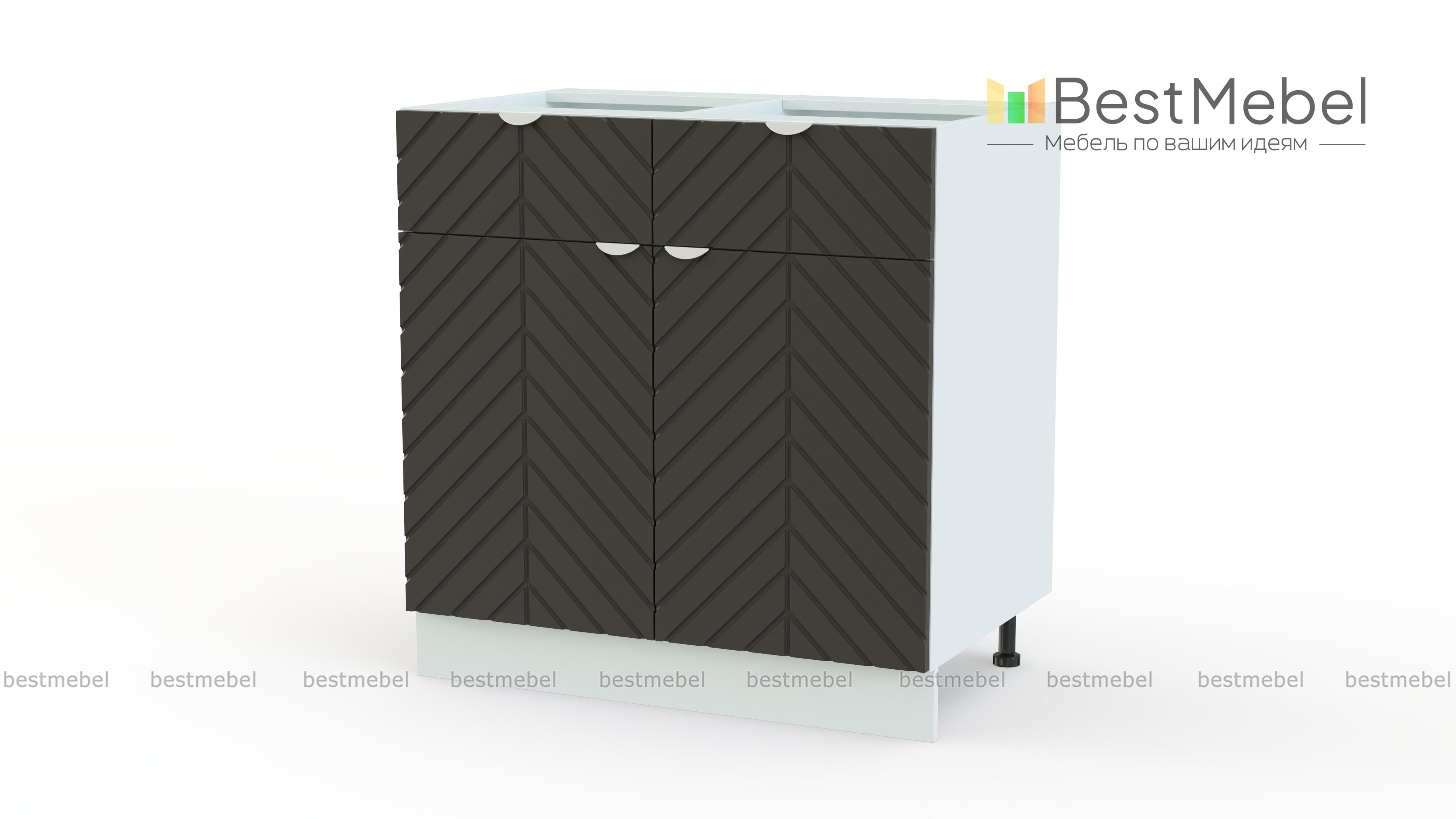 Шкаф нижний с 2-мя дверцами и 2-мя ящиками Анаис BMS позволяет хранить в одном месте мелочи и габаритную кухонную посуду. Комбинированный шкаф объединил два выдвижных ящика, расположенных сверху, и распашную секцию с двумя дверцами. Светлые фасады с диагональной фрезеровкой и полукруглыми ручками сочетают в себе удобство и эстетику. Купить шкаф нижний с 2-мя дверцами и 2-мя ящиками Анаис BMS, изготовленный по вашим размерам, можно недорого на сайте нашего интернет-магазина.