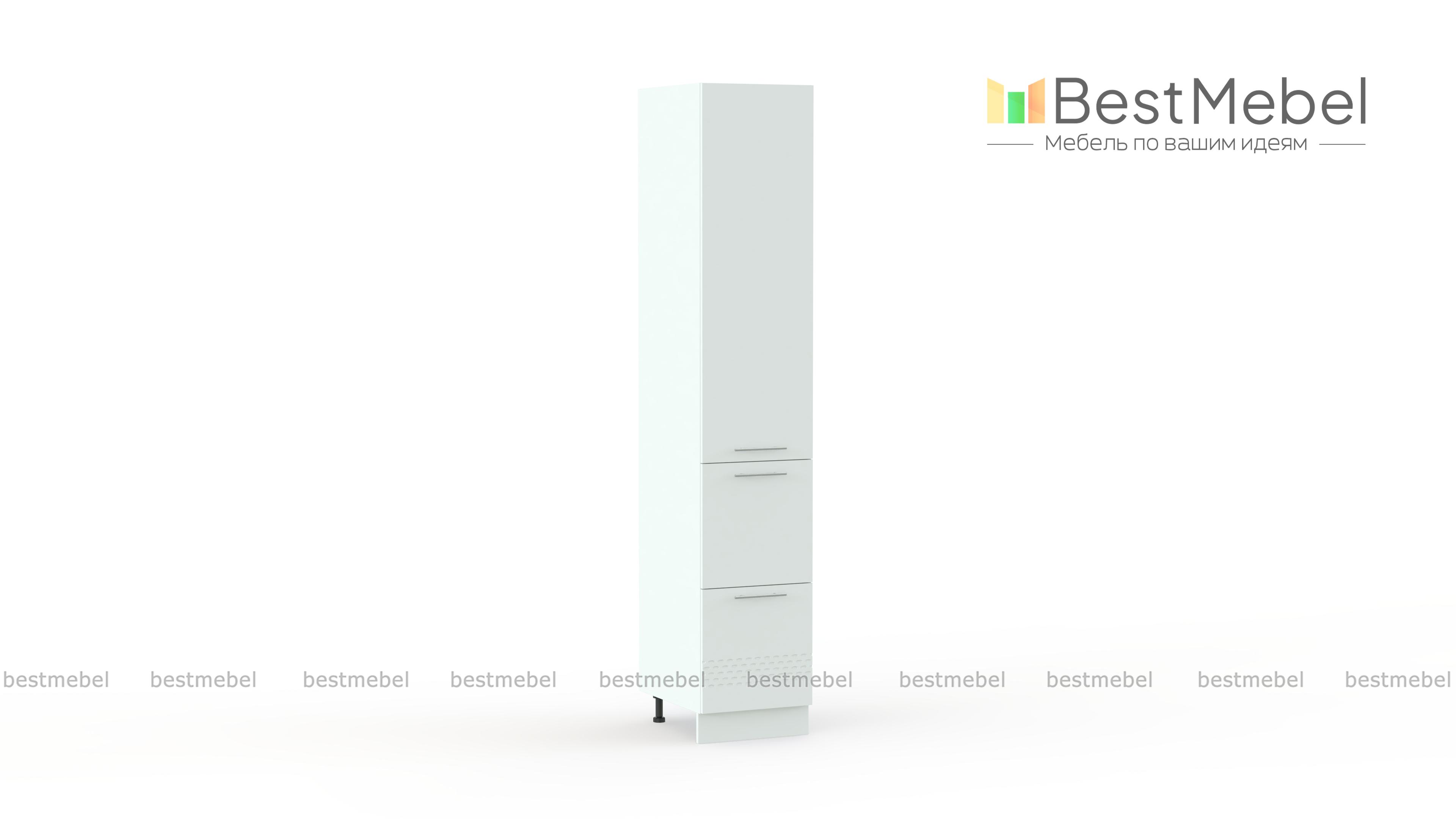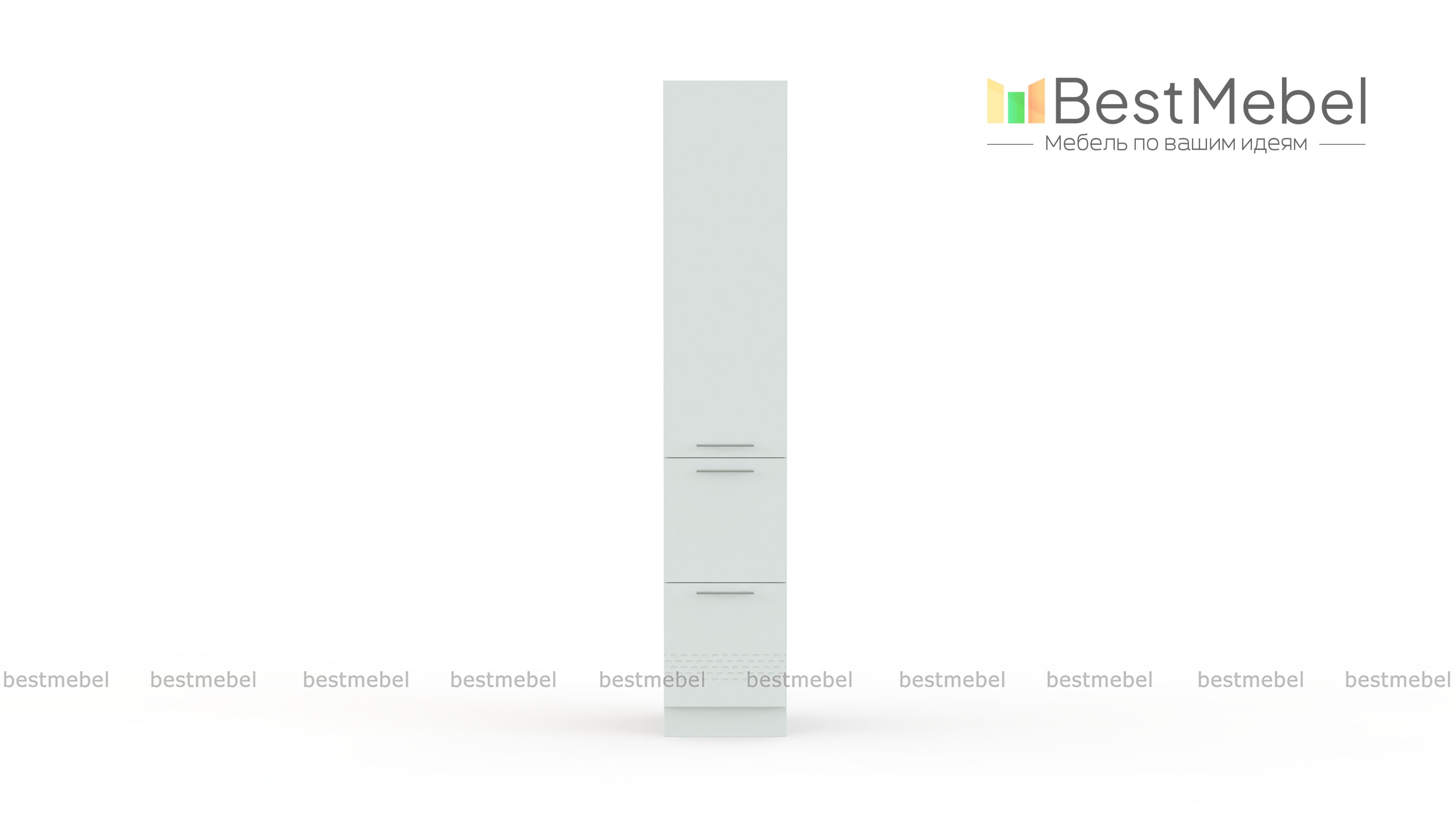 Шкаф верхний пенал Капля 400мм с ящиками BMS – высокая комбинированная модель для яркого интерьера в современном стиле. Шкаф гармонично дополнит другие модули серии и станет удобной системой хранения для продуктов, посуды, разнообразных бытовых предметов. В нижней части пенала располагаются два больших выдвижных ящика, а верхняя представлена распашным отделением с полками. Белые матовые фасады с 3D рельефом просты в уходе и надолго сохранят эстетичный вид. Купить шкаф верхний пенал Капля 400мм с ящиками BMS приглашаем в наш интернет-магазин.