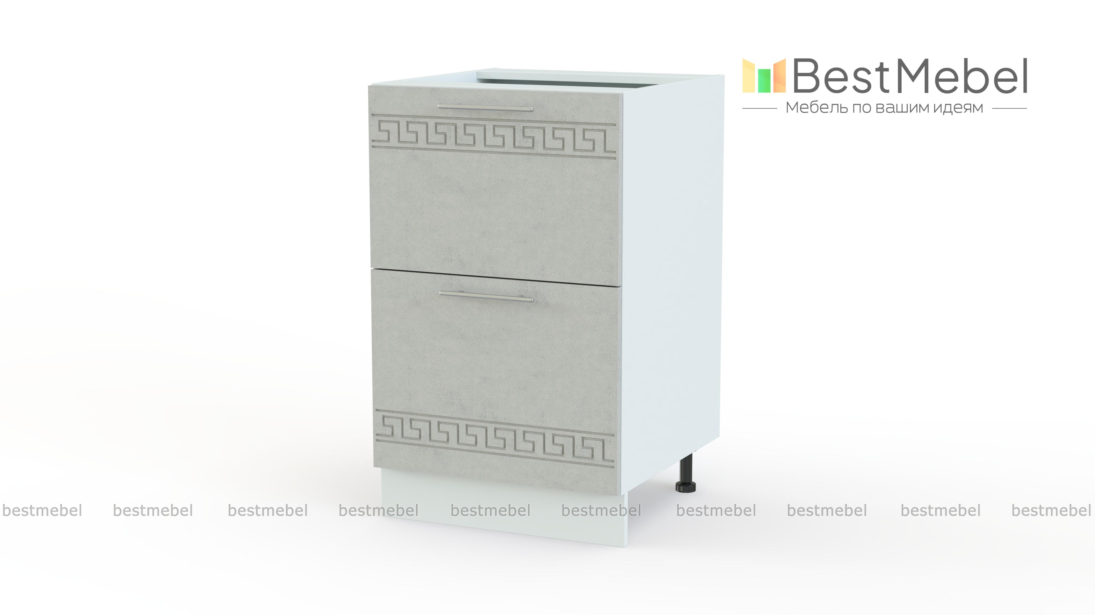 Тумба напольная 2 ящика Греция BMS – широкая модель, которая будет органично смотреться в просторных помещениях. Уместная и как самостоятельный предмет меблировки, и в комплекте, тумба выглядит легкой со светлыми фасадами, украшенными изящными ручками и орнаментом в этностиле. Для размещения мелких кухонных принадлежностей предусмотрены два просторных выдвижных ящика. Купить тумбу напольную 2 ящика Греция BMS, эффектную и удобную в эксплуатации, приглашаем по доступной цене в наш интернет-магазин.