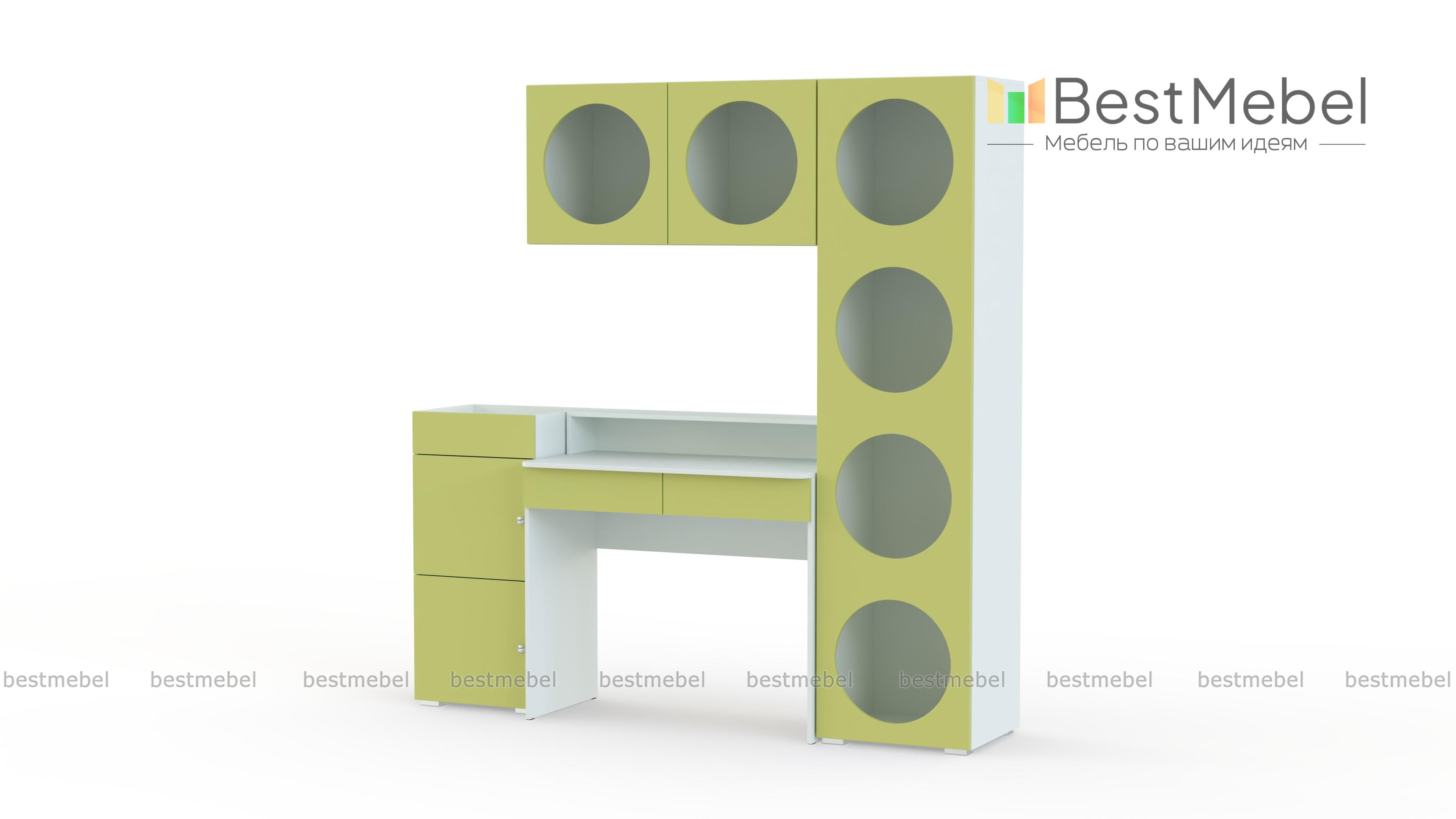 Детская стенка Авелин 5 BMS поможет создать эстетичную рабочую зону. Гладкие светлые фасады компьютерного стола и тумбы скомбинированы с круглыми вырезами стеллажа и навесной полки. Помимо стильного оформления, эта комплектация отличается большим количеством открытых мест для хранения, позволяя разместить на виду все необходимые материалы. Купить детскую стенку Авелин 5 BMS с индивидуальным подбором цвета и размеров приглашаем в наш интернет-магазин.