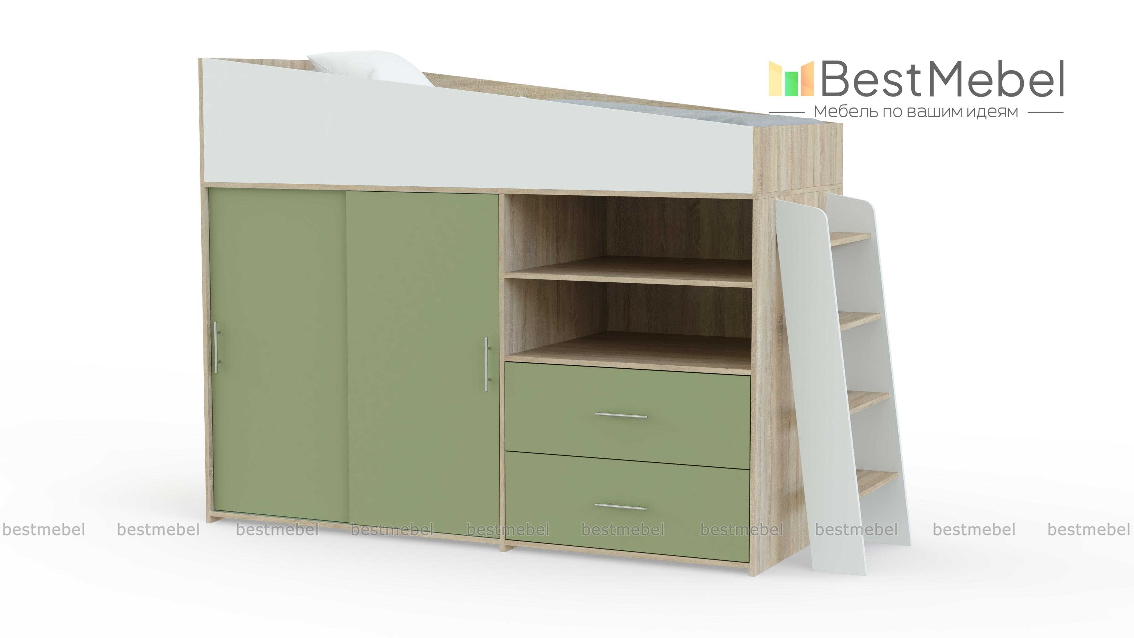 Кровать-чердак Дождик BMS – это надежность, безопасность и высокая функциональность. Модель незаменима в современных малогабаритных квартирах и позволит сэкономить полезную площадь детской комнаты, компактно объединив просторное спальное место с защитными бортиками, шкаф-купе для одежды, открытые полки и вместительные выдвижные ящики для игрушек и постельных принадлежностей. Купить кровать-чердак Дождик BMS по доступной цене приглашаем в наш интернет-магазин.