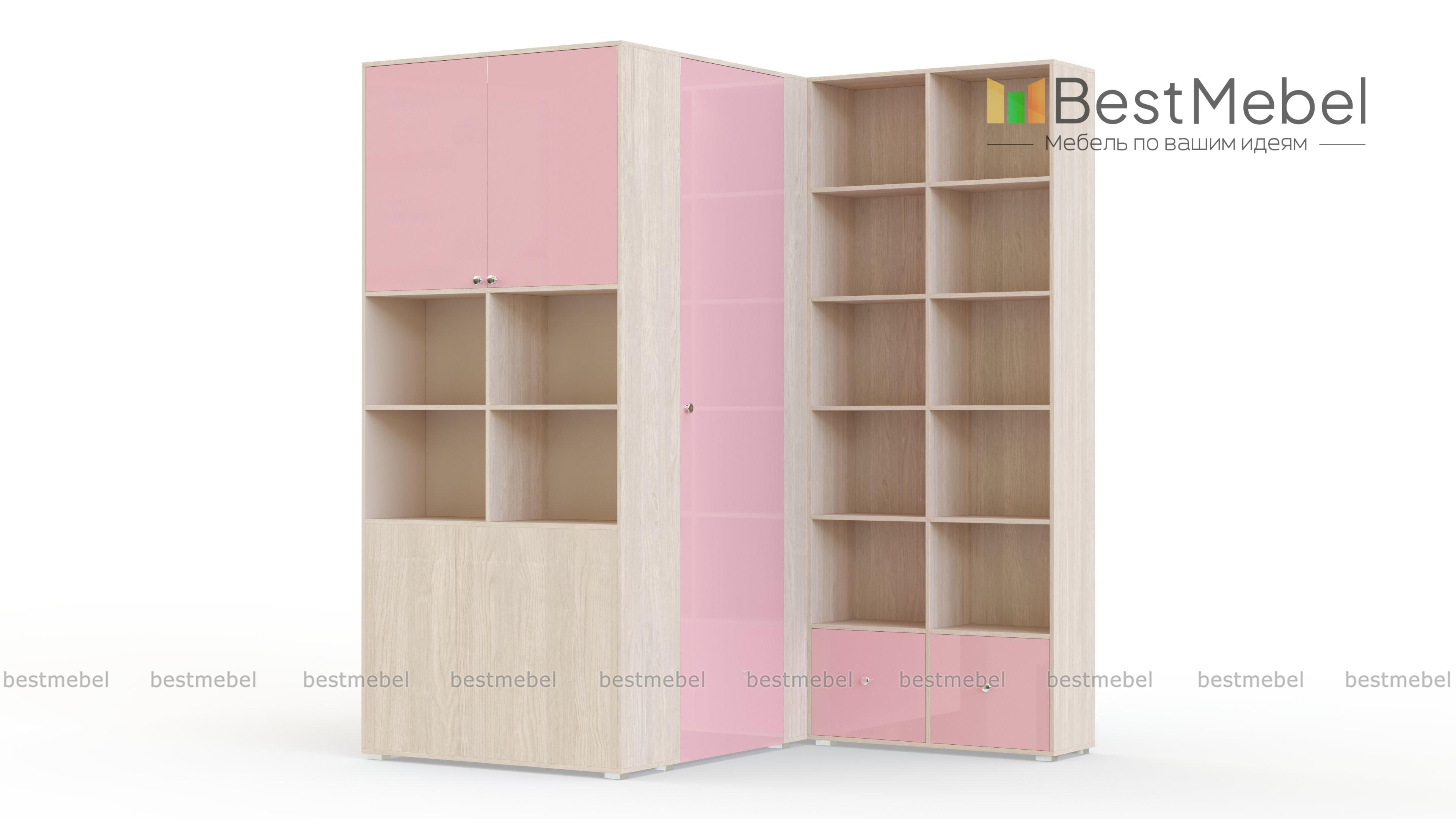 Шкаф Салли 4 BMS представляет собой модульную композицию, которая поможет задействовать обычно неиспользуемое угловое пространство и сэкономить полезную площадь комнаты. В комплект входят двухфасадный шкаф, оборудованный распашным отделением, просторными нишами и секцией со штангой и полками, а также вместительный стеллаж для книг, игрушек, школьных принадлежностей и предметов декора. В оформлении шкаф сочетаются светлые тона и цветной фасад. Купить шкаф Салли 4 BMS для меблировки детской приглашаем в наш интернет-магазин.