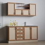 Кухня НМК В-1 BMS гармонично объединяет классические и современные черты и станет прекрасным вариантом для малогабаритной квартиры или студии. Модель с рамочными фасадами выполнена в теплых древесных оттенках и смотрится особенно уютно. Напольные тумбы оборудованы распашными отделениями и выдвижными ящиками, навесные шкафчики дополнены открытыми скругленными полками на хромированной опоре. Купить кухню НМК В-1 BMS по доступной цене приглашаем в наш интернет-магазин.