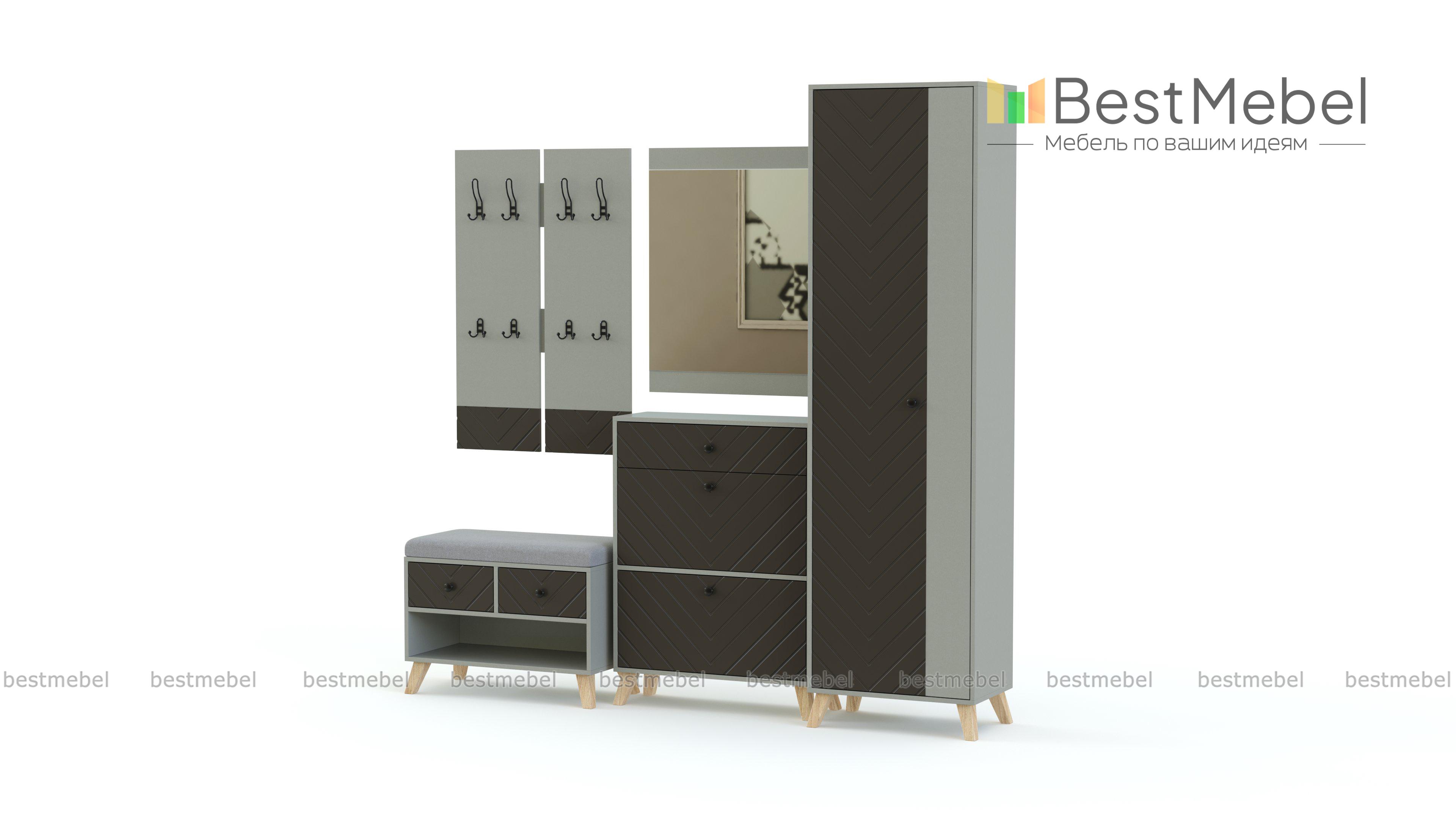 Прихожая Пресли 11.2 BMS поможет создать гармоничный и функциональный интерьер с ярким характером. Пенал, обувница с мягкой обивкой сиденья, дополненная зеркалом тумба и навесная вешалка из двух широких панелей разместят одежду, обувь, аксессуары и важные мелочи. Простые формы и природные древесные оттенки модулей подчеркивают эффектный дизайн цветных фасадов, украшенных фрезеровкой в стиле сканди. Купить прихожую Пресли 11.2 BMS с выбором фурнитуры и цвета по каталогу приглашаем к нам в интернет-магазин.