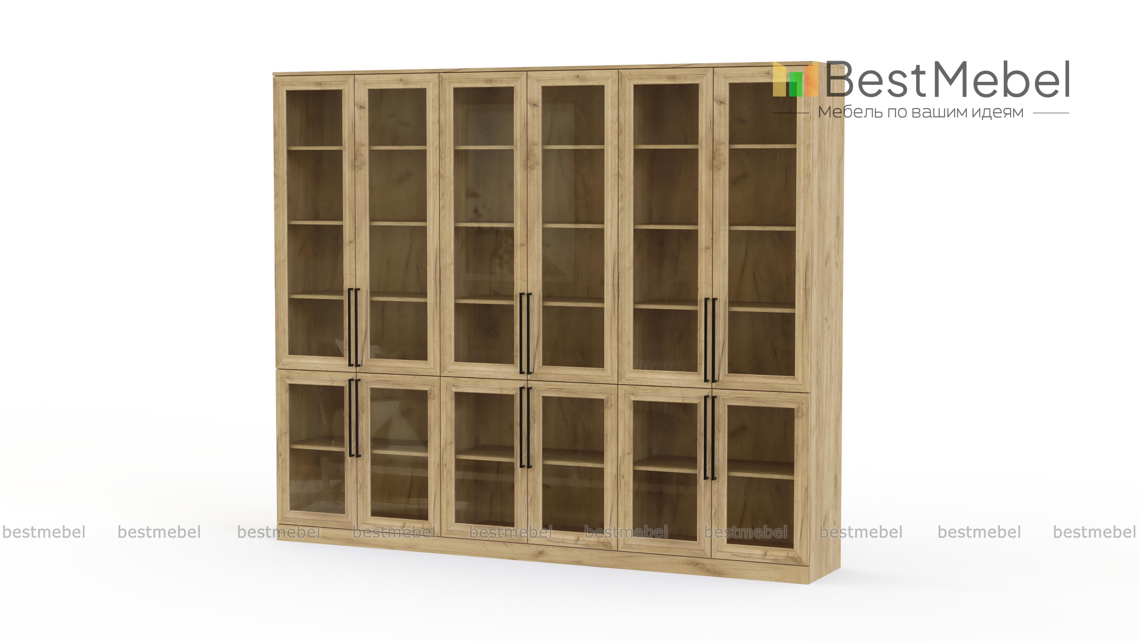 Шкаф книжный Рим 5 BMS с застекленным фасадом будет востребован в домашнем интерьере, офисе или библиотеке. Внутри шести распашных отделений — больших и малых, расположены полки для книг и журналов, документов, предметов коллекции и других памятных вещей. На дверцы классического дизайна с фрезерованными рамками установлены удлиненные стильные ручки. Купить шкаф книжный Рим 5 BMS с выбором размеров, цвета и фурнитуры вы сможете в нашем интернет-магазине.