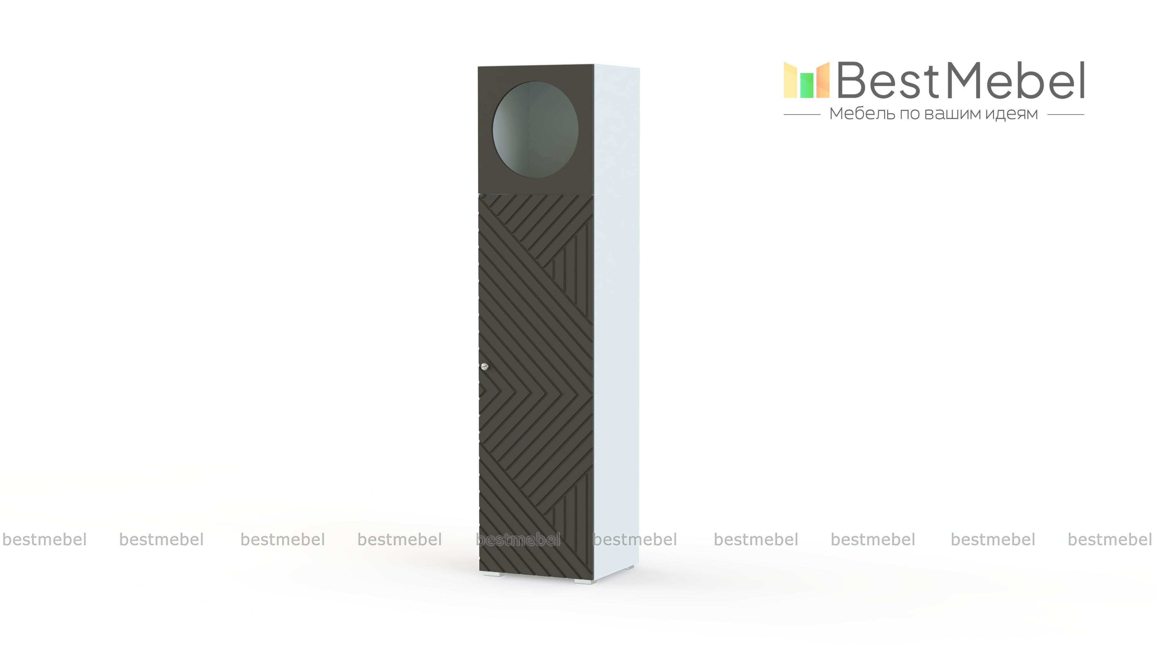Шкаф-пенал Авелин 6 BMS создан в современной стилистике и подходит для любого помещения дома. Основное отделение для хранения одежды и бытовых вещей дополнено верхней секцией с декоративным круглым вырезом. Украшенные геометрической фрезеровкой фасады пенала выполнены из МДФ, корпус — прочная ламинированная плита. Купить шкаф-пенал Авелин 6 BMS вы всегда сможете в нашем интернет-магазине, подобрав необходимые размеры, фурнитуру и цвет по каталогу.