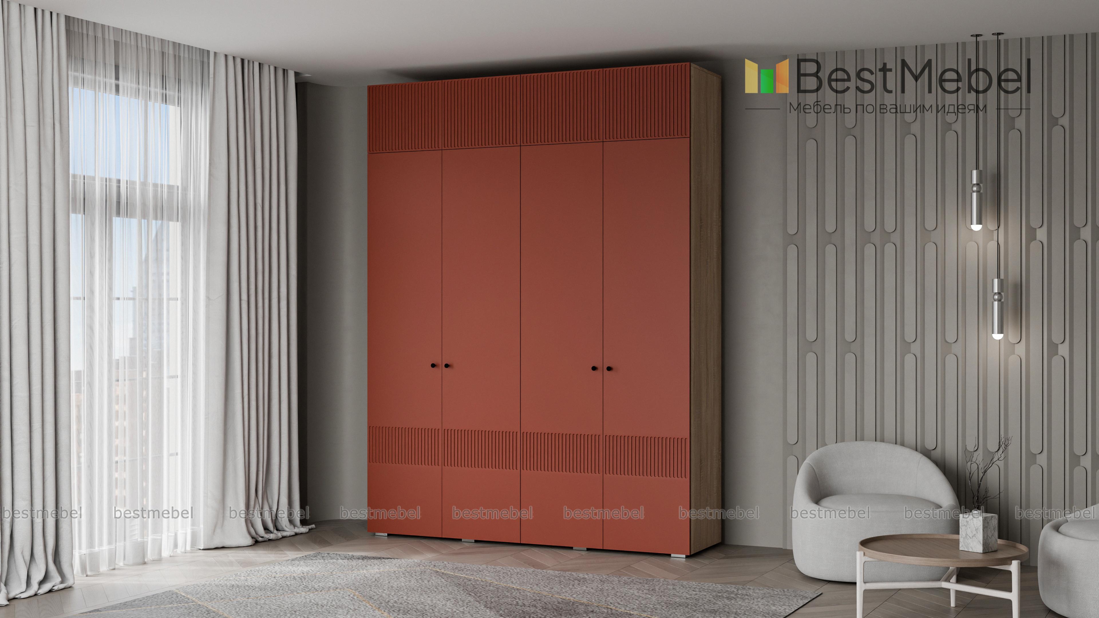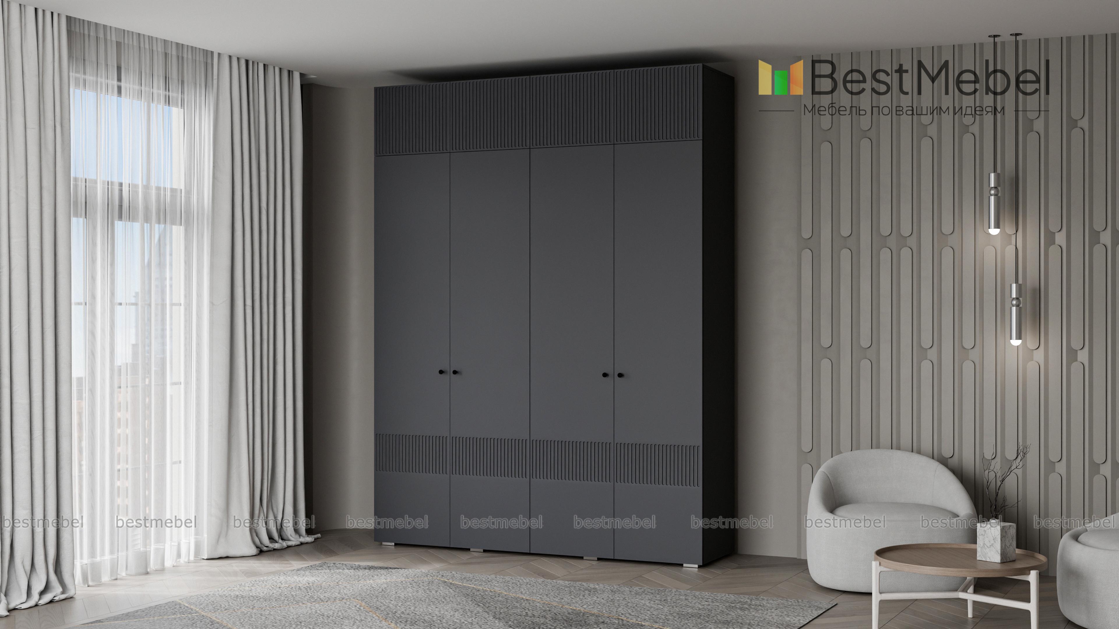 Шкаф распашной Джосс 10 BMS с четырьмя дверцами и антресолью можно разместить в разных комнатах: небольших спальнях, прихожих и детских. Оригинальные оттенки корпуса и фасада создают комфортную атмосферу в помещении, стильный акцент в отделке — фрезерованный орнамент. За дверцами справа скрыты штанга и полка, а слева — узкая платяная секция и бельевой стеллаж. Купить шкаф распашной Джосс 10 BMS с выбором размеров, цвета и фурнитуры вы сможете недорого в нашем интернет-магазине.