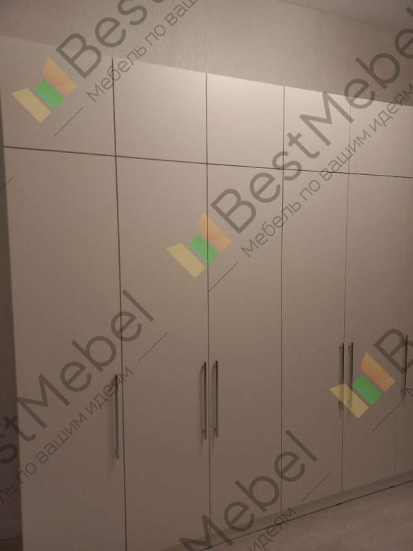 Заказ 00000275042, шкаф распашной Остин Лайт 6 BMS (1700х2500х500). Это не первый мой шкаф с БестМебель. Классно, что можно придумать свое наполнение, очень удобно. В целом качество нормальное, кое-где есть микро сколы, но их видно только при ближайшем рассмотрении, но не при ежедневном использовании. Фурнитура приемлемая, только на верхних полках мы просили не устанавливать пуш-ту-опен механизм, иначе дверцы немного оттопыриваются. Но поскольку туда убраны редко используемые вещи, это не проблема. Так что могу рекомендовать, особенно если требуется какое-то нестандартное исполнение.