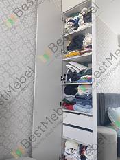 Заказ 00000989902. Шкаф "Остин Нео 16 BMS" мы брали в спальню, чтобы навести порядок с одеждой. Первое, что понравилось – возможность выбрать цвет. Взяли серый – смотрится очень стильно и современно, именно такой нейтральный, но не скучный оттенок, который мы искали. Черные ручки стали отличным контрастным акцентом, завершили вид. Сам дизайн действительно минималистичный и аккуратный, не перегружает пространство.Функционально шкаф оказался удобным. Три двери – хороший размах. Отделение для вешалок вместило все платья и костюмы, полки отлично подошли для футболок, свитеров и постельного белья. Распашная антресоль вверху – спасение для чемоданов и сезонных вещей, которые не нужны каждый день. Зеркало на центральной дверце – просто бомба! Очень удобно видеть себя в полный рост перед выходом, не бегая по квартире. И правда создает ощущение, что комната чуть больше.Но сборка... Сборка была испытанием.Деталей много, и самое сложное – установить вертикальные стенки (боковины и центральную перегородку) в одиночку. Это просто нереально. Они большие, тяжелые, их нужно держать строго вертикально и одновременно прикручивать. Без помощника тут никак, мы еле справились вдвоем. Еще один момент – петли. Их несколько типов (для обычных дверей и для зеркальной), и в инструкции не сразу понятно, какие куда. Пришлось искать видео сборки в интернете, чтобы разобраться – без него наверняка перепутали бы. Будьте готовы к этому этапу.Если вам нужен компактный, но вместительный шкаф с современным дизайном и полным зеркалом, и вы готовы к сборке (обязательно с помощником и, возможно, с обучающим видео под рукой), то "Остин Нео" – отличный вариант. Смотрится дороже своей цены, и теперь вся одежда наконец-то прибрана!