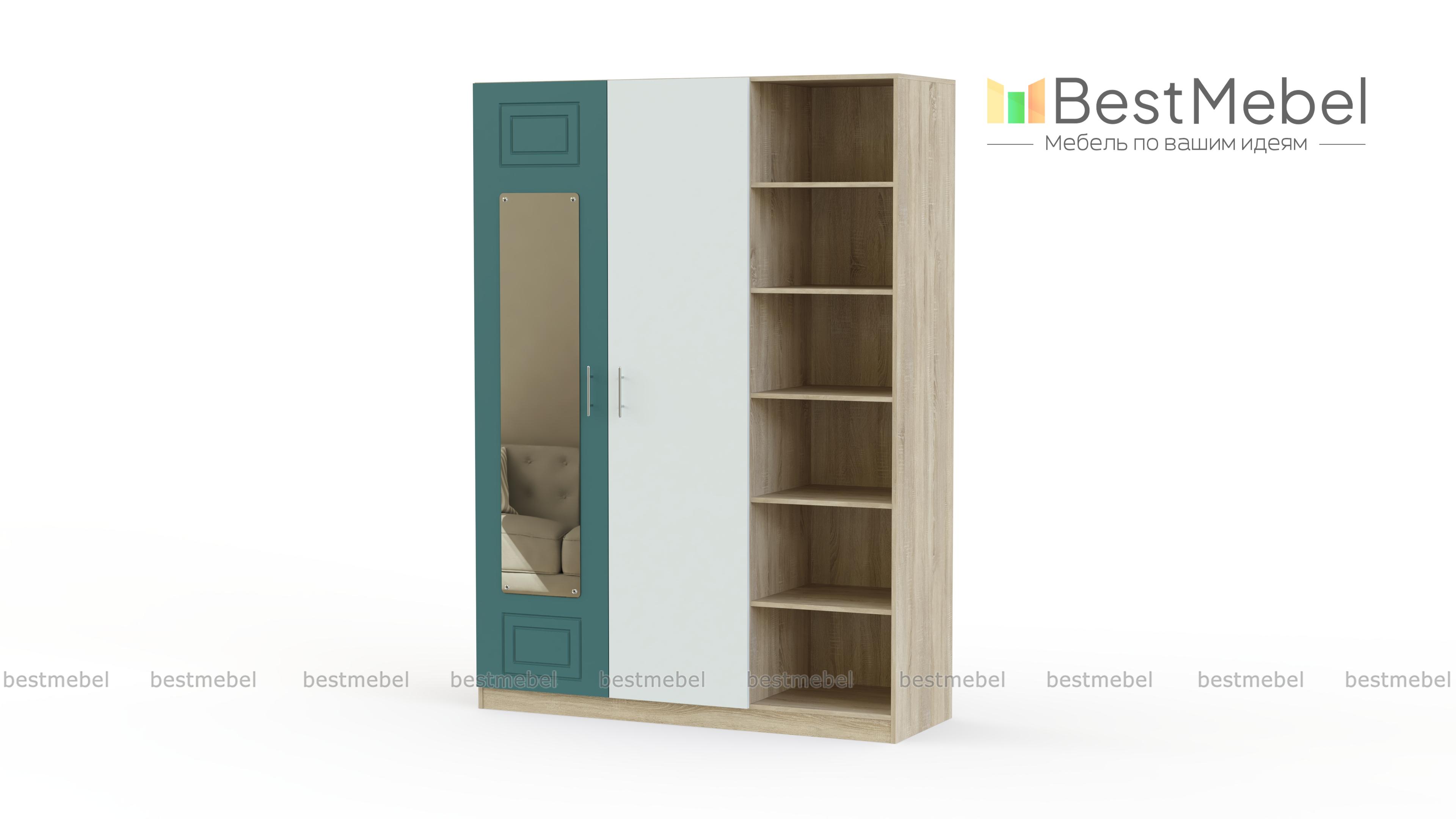 Шкаф с зеркалом Анастасия 4 BMS отличается особенной вместительностью благодаря комбинированной конструкции и элегантным современным дизайном. Двухдверное платяное отделение со штангой дополнено стеллажом с открытыми полками для необходимых в зоне быстрого доступа вещей. Фрезерованные фасады выполнены в контрастных тонах, одна из створок оборудована незаменимым для примерок ростовым зеркалом. Купить шкаф с зеркалом Анастасия 4 BMS для комфортного спального интерьера приглашаем в наш интернет-магазин.