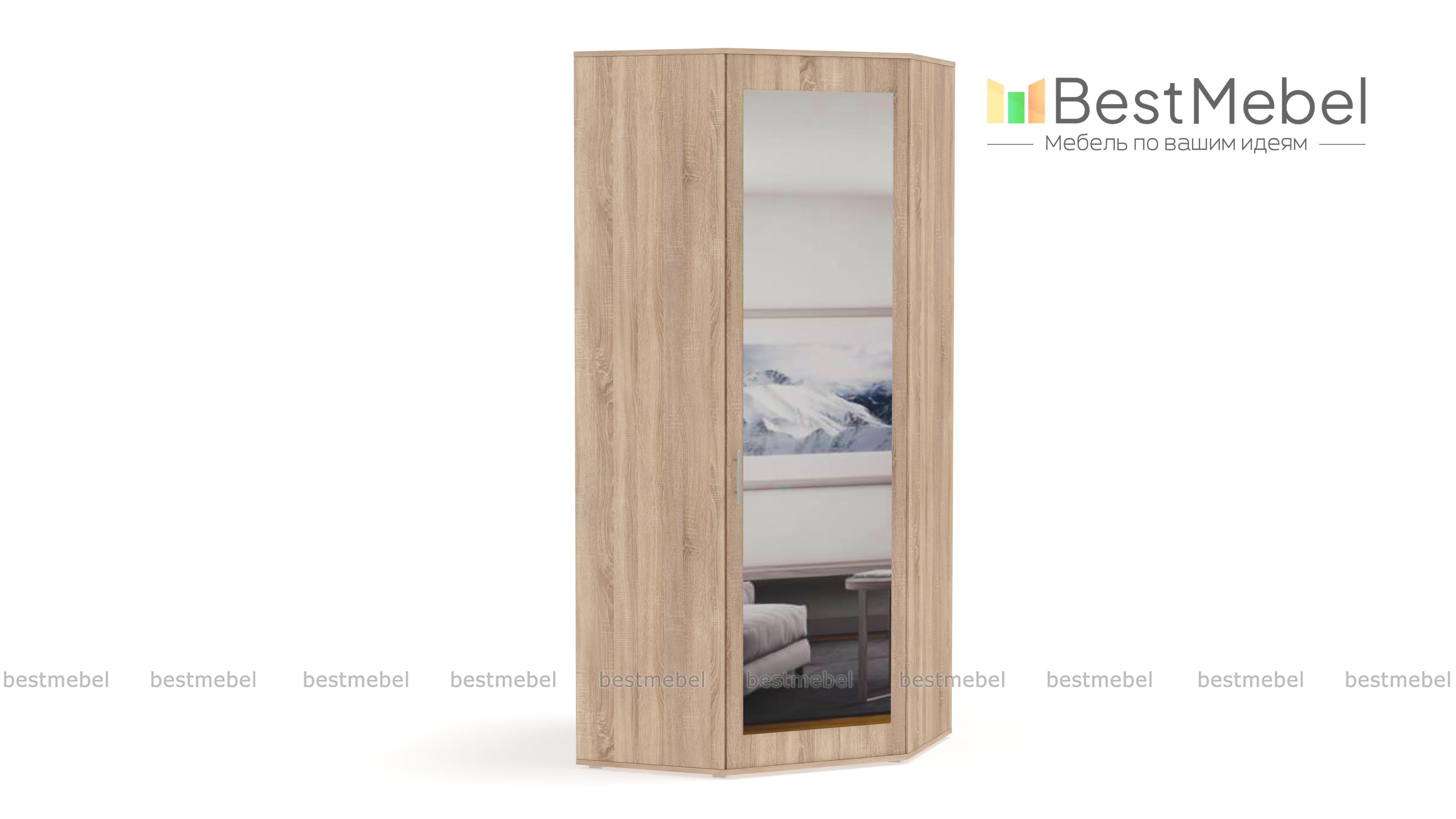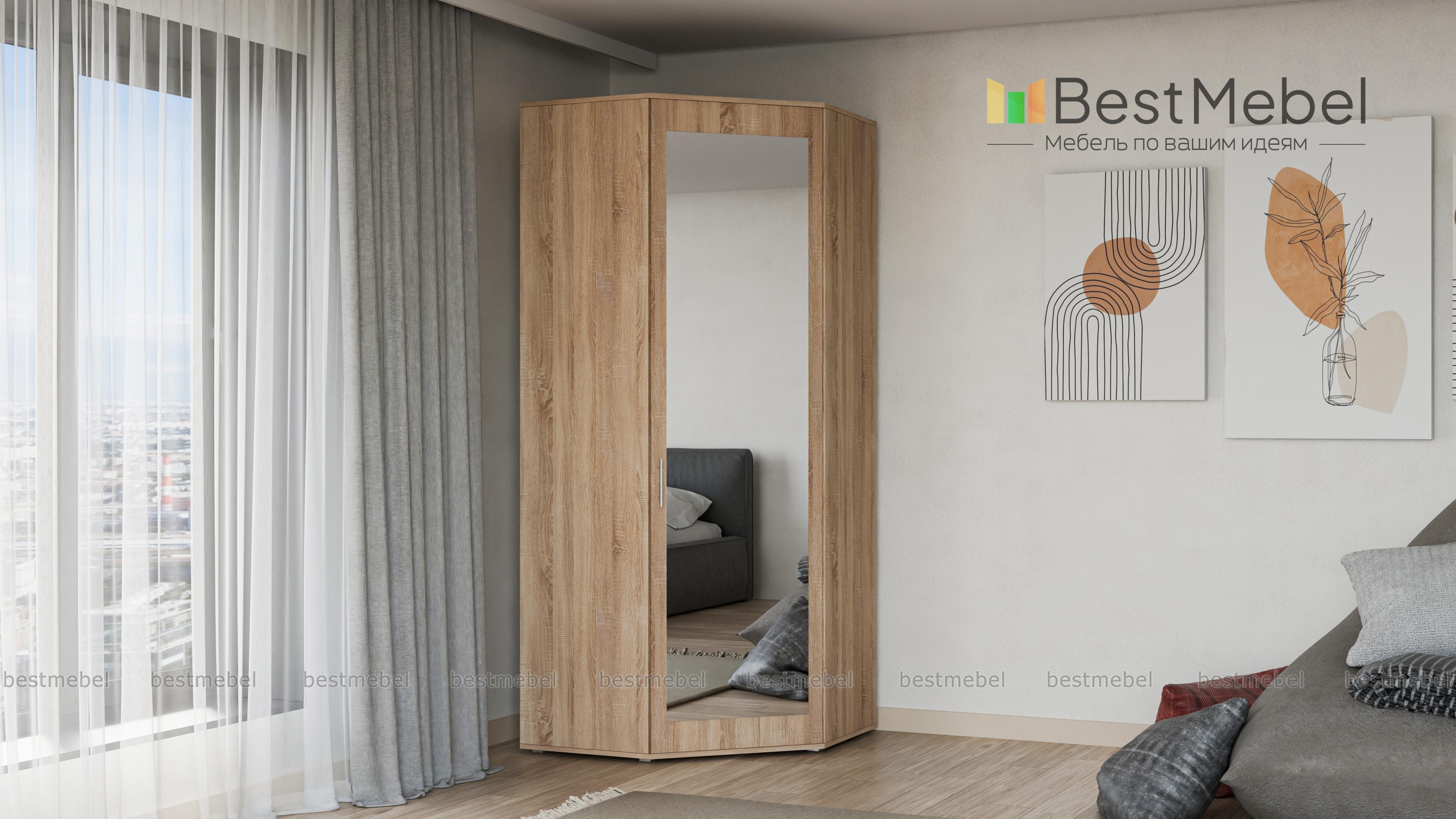 Шкаф угловой Остин BMS гармонично будет смотреться в прихожей или спальне. Прекрасно подойдет даже для миниатюрных помещений. Супер экономичная модель - экономит и свободное пространство, и Ваши деньги. За широкой дверцей скрываются отсек со штангой и отделение с полками, куда без труда можно вместить и верхнюю одежду, и личные вещи. Что положить в удобный шкаф найдется в каждом доме. Большое зеркало – несомненный плюс данного изделия, оно не только визуально расширяет пространство, но и позволит полюбоваться своим образом при смене наряда. Купить шкаф угловой Остин BMS Вы можете на нашем официальном сайте с минимальными затратами средств и времени.