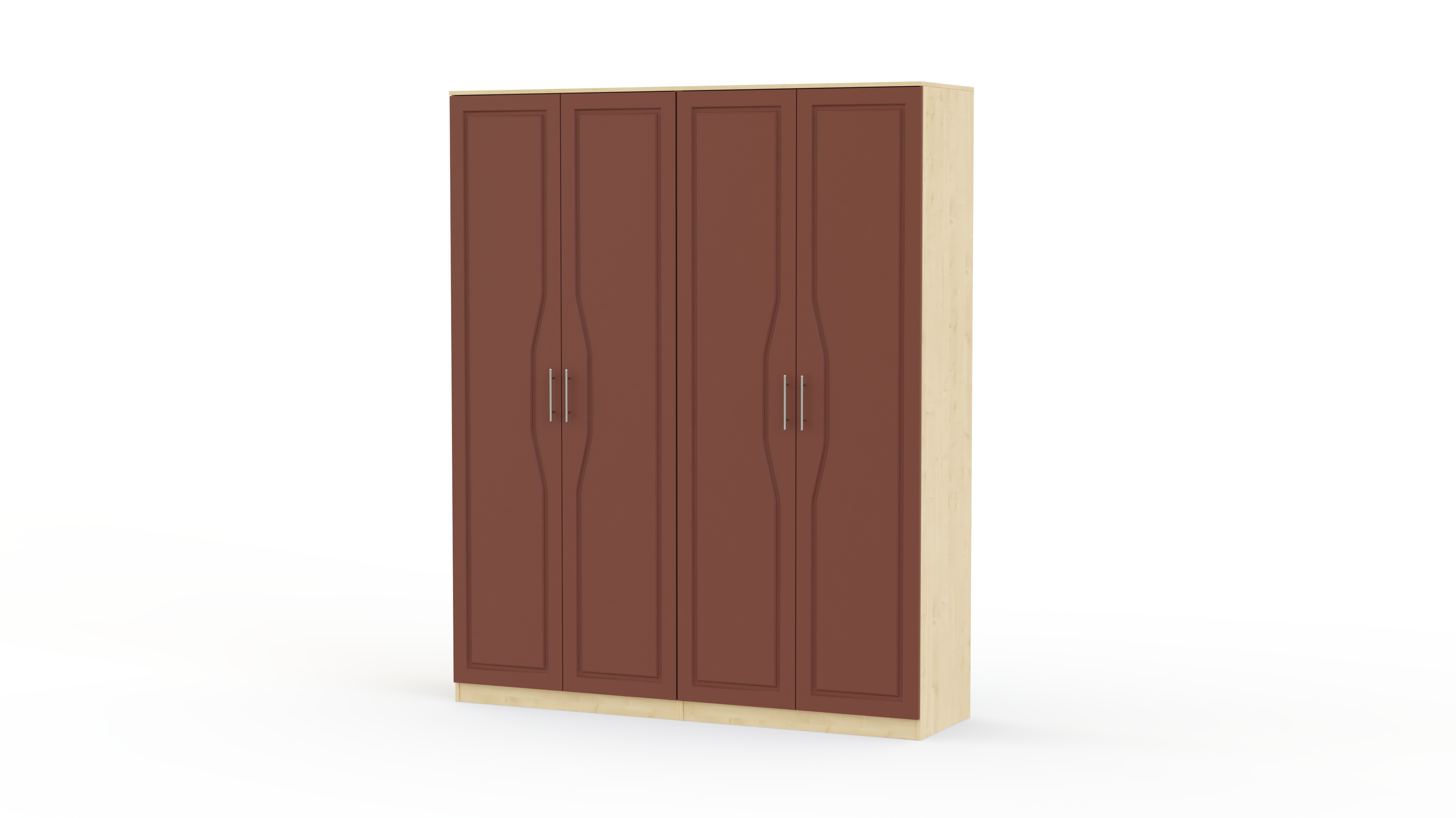 Спальня Лас Вегас BMS выдержана в одном глубоком тоне, сделана в классическом современном стиле, качественная и основательная. Эта мебель будет отлично смотреться в любом помещении, к ней подойдут любые обои или шторы. Комплект состоит из большой кровати без ножек, двух прикроватных тумб с открытой нишей и отделением с полкой за дверкой и большого 4-х створчатого одежного шкафа. Вы можете заказать спальню Лас Вегас BMS в другом цвете, поменять при заказе базовые размеры мебели, изменить количество предметов гарнитура.