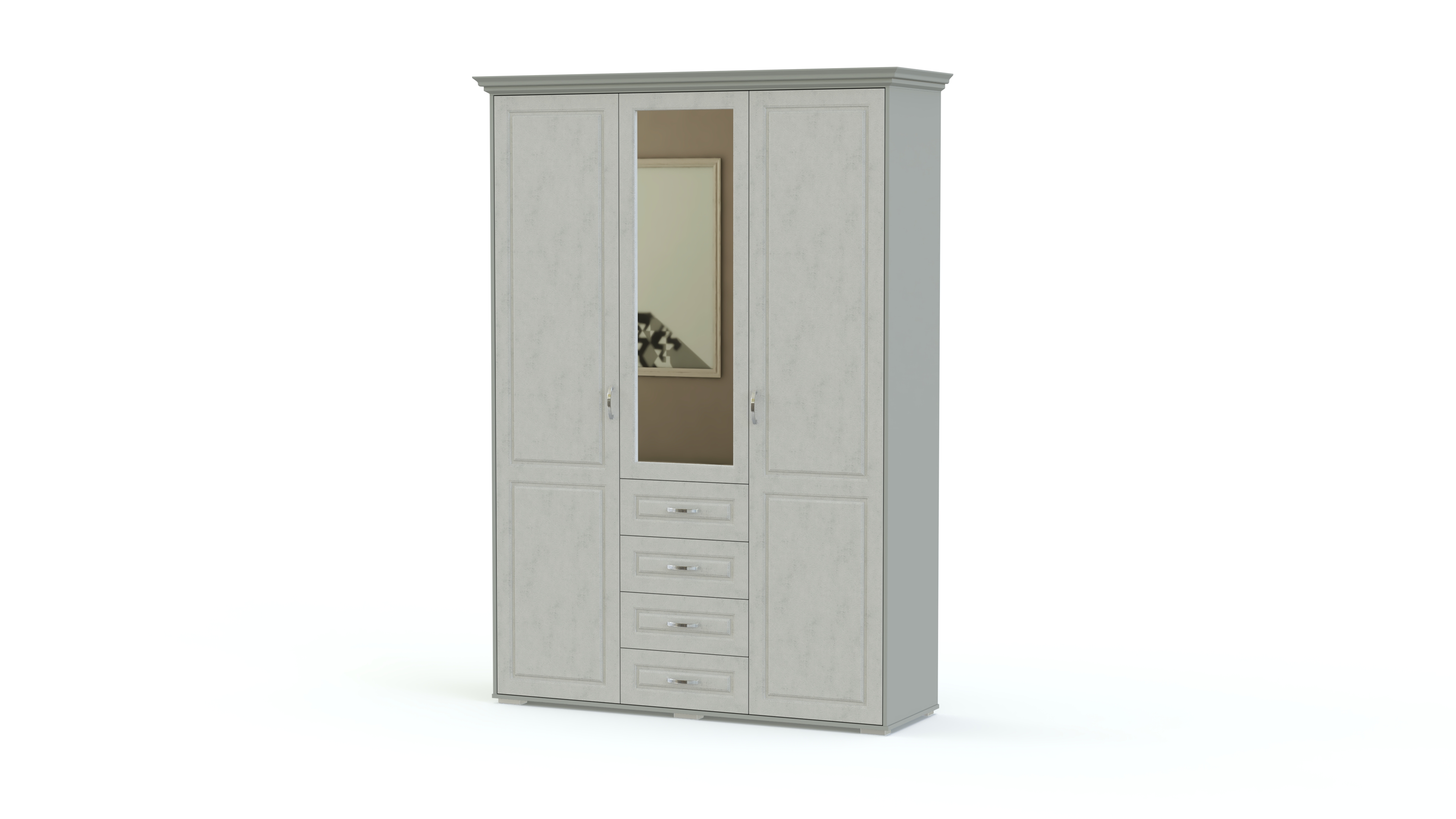 Спальня Мирма 4 BMS станет выбором тех, кто ценит сдержанную элегантность классики. Эффектный гарнитур состоит из кровати, высокая спинка в изголовье которой декорирована экокожей с каретной стяжкой, прикроватных тумб, бельевого комода с зеркалом, а также трехдверного распашного шкафа с выдвижными ящиками для мелочей. Фрезерованные фасады предметов выполняются в благородных древесных тонах. Купить спальню Мирма 4 BMS по лучшей цене вы сможете в нашем интернет-магазине.