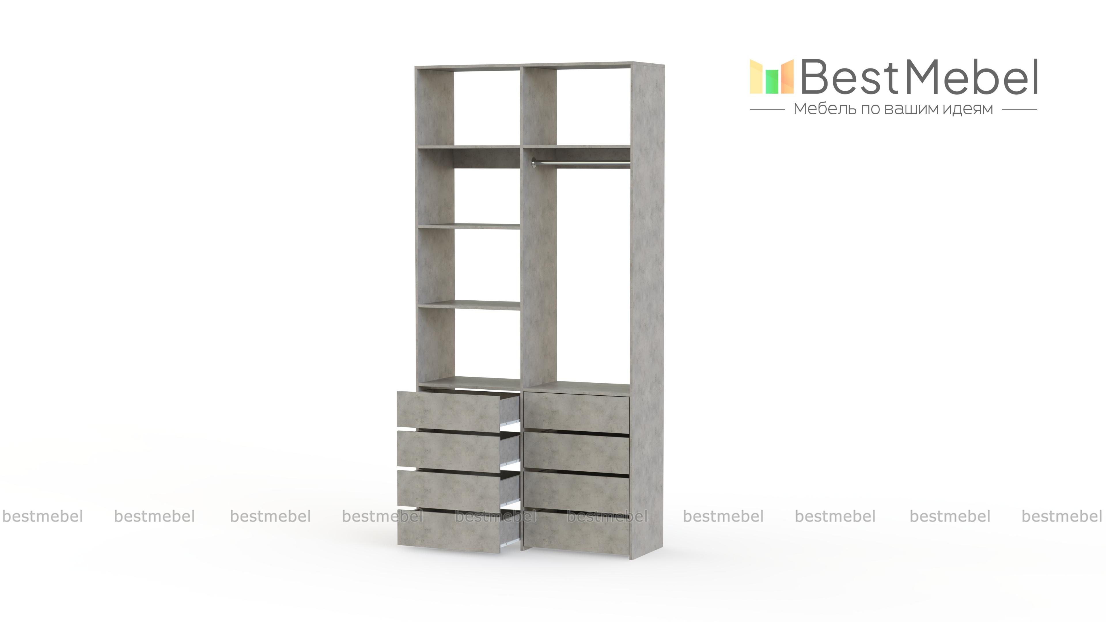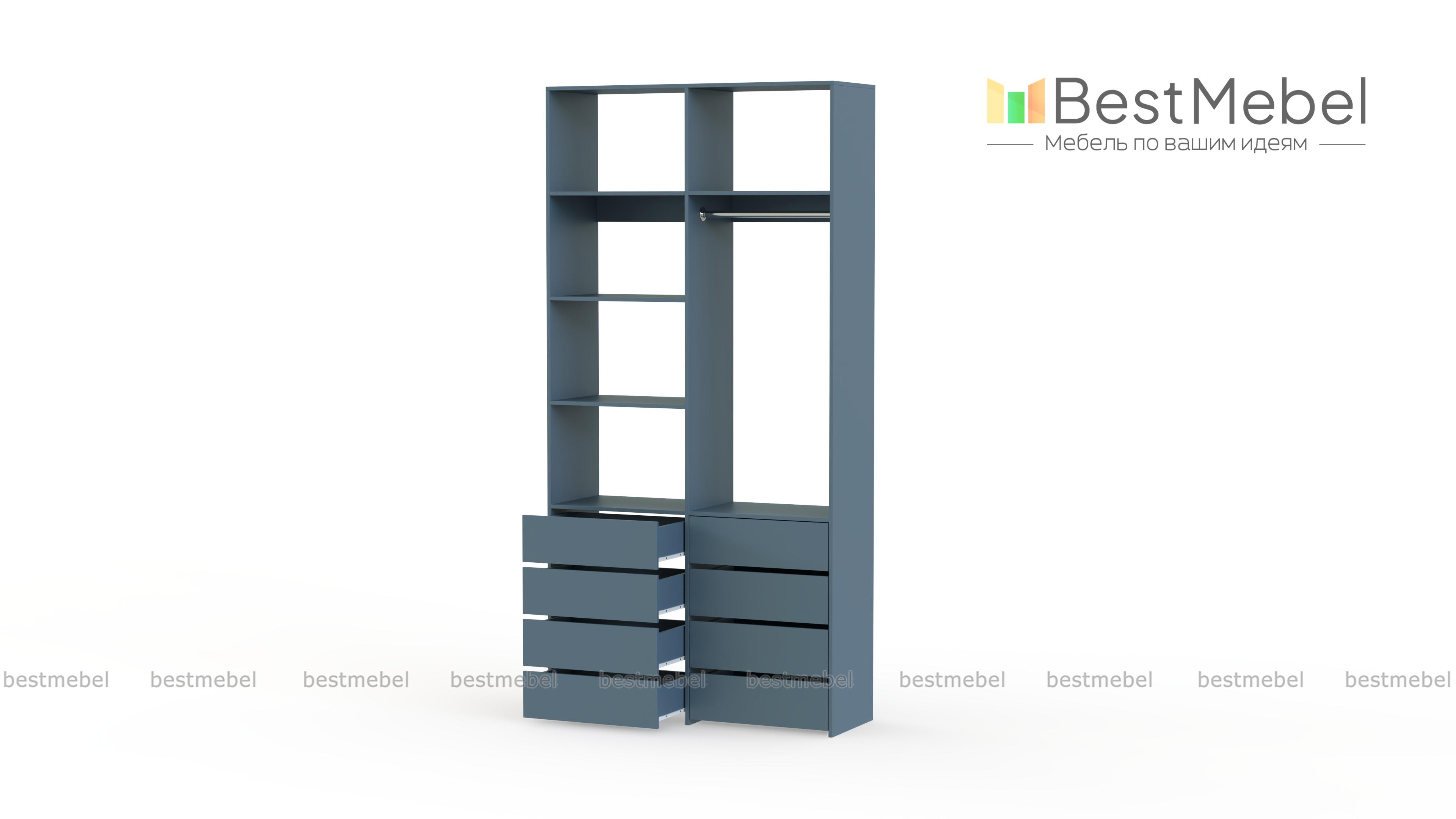 Стеллаж для одежды Мирта 3 BMS – функциональный и стильный предмет обстановки для вашего дома. Открытая конструкция позволяет разместить на виду повседневную одежду, коробки с обувью и органайзеры с мелочами, а для прочих вещей предусмотрены два ряда выдвижных ящиков. Прочность и долговечность стеллажу гарантируют материалы и фурнитура высокого качества. Купить стеллаж для одежды Мирта 3 BMS вы сможете в нашем интернет-магазине с изготовлением по индивидуальным размерам.
