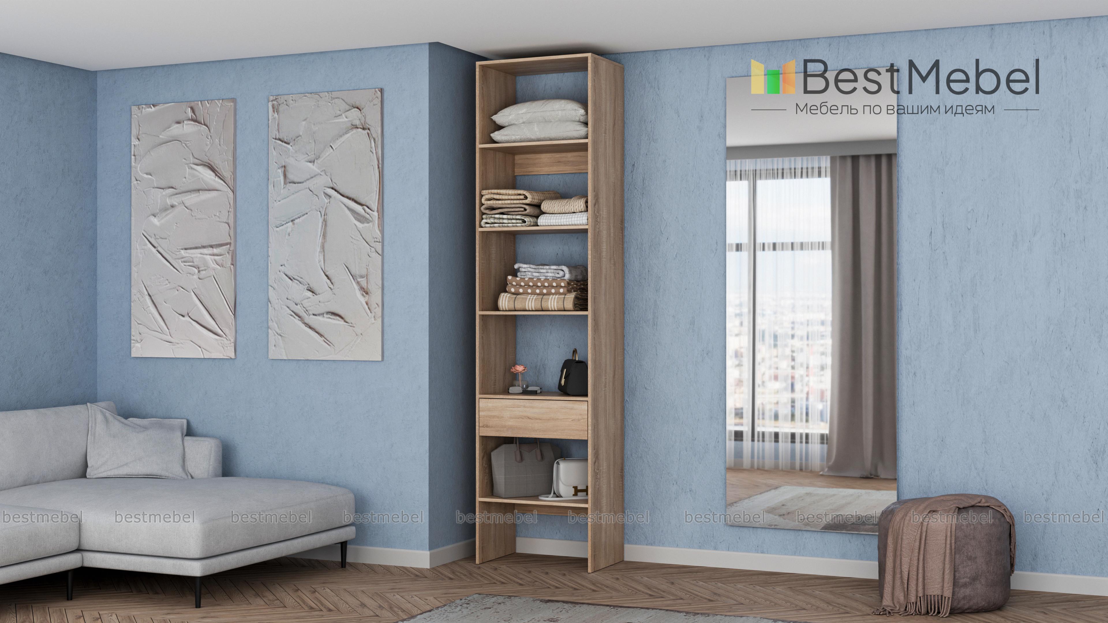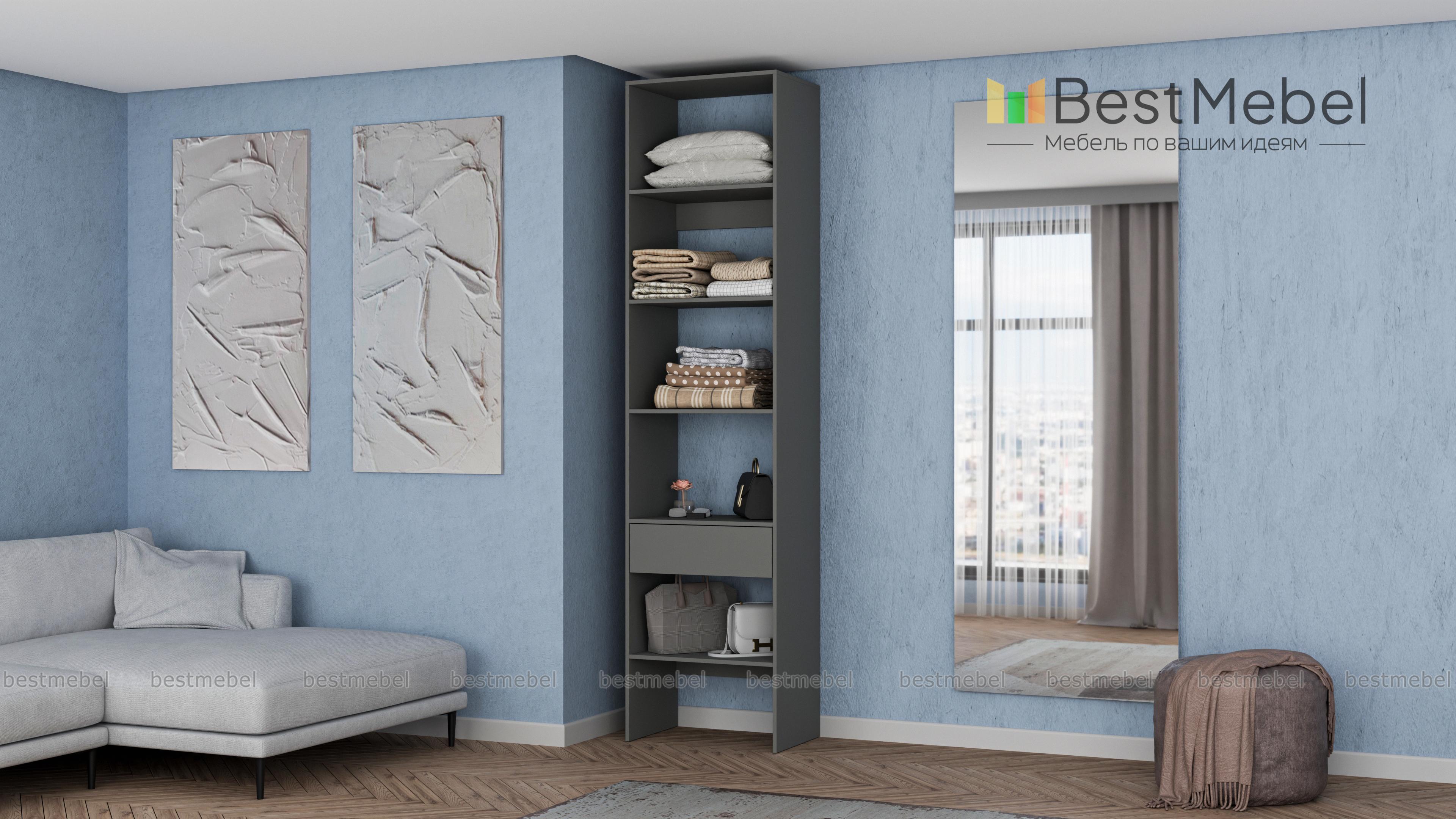 Стеллаж для одежды Мирта 34 BMS можно установить в спальне, прихожей или гардеробной. Компактные размеры конструкции и лаконичный современный дизайн прекрасно подходят для малометражных помещений. Четыре полки и выдвижной ящик позволяют вам разместить на удобной высоте обувь, одежду в сложенном виде, контейнеры и корзины для хранения. Купить стеллаж для одежды Мирта 34 BMS с изготовлением по индивидуальным размерам вы сможете недорого в нашем интернет-магазине.