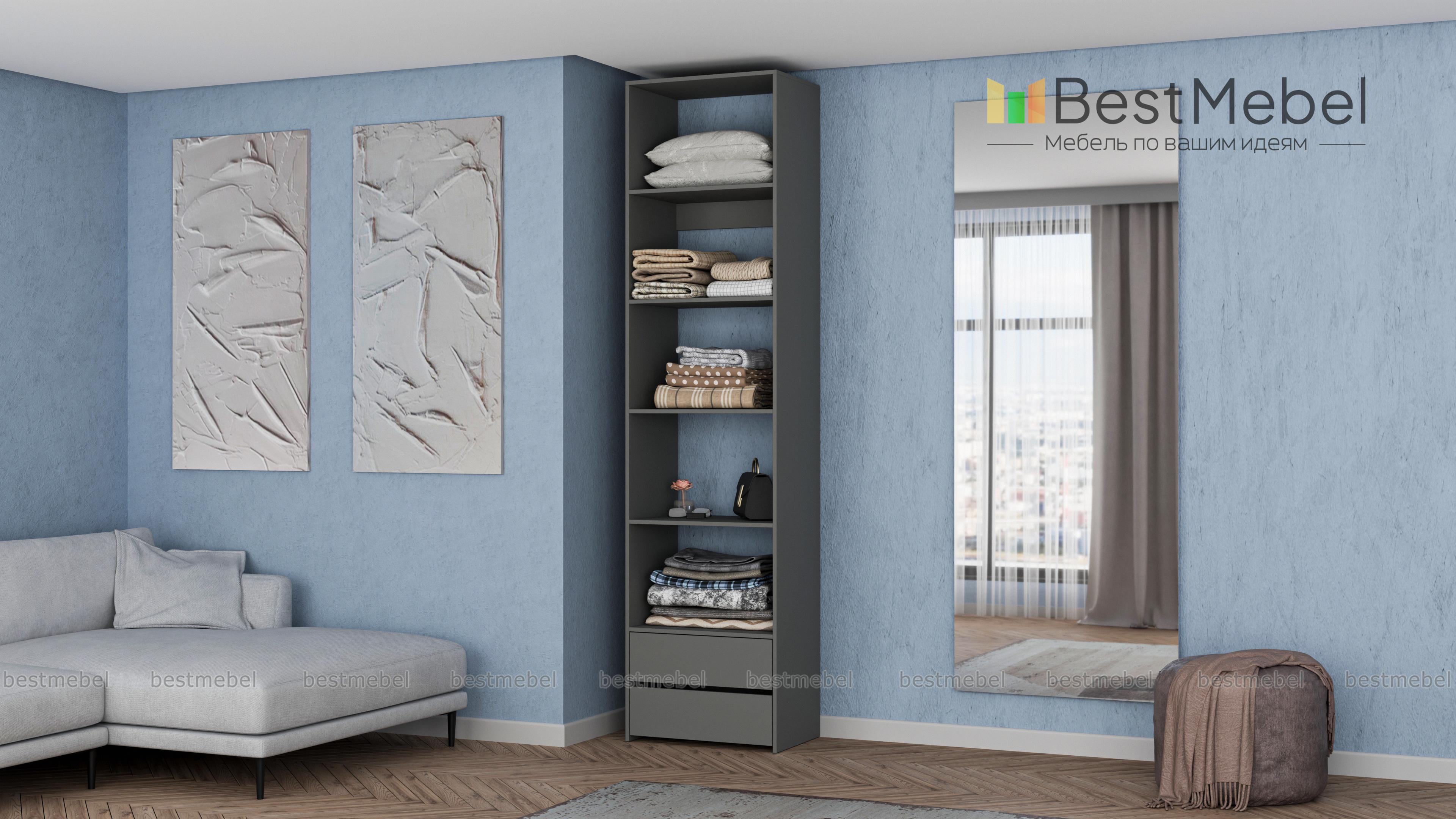 Стеллаж для одежды Мирта 36 BMS позволит вам сохранить порядок в доме. Благодаря компактным габаритам конструкция занимает минимум места, а дизайн сочетается с большинством современной мебели. Помимо стандартных открытых полок стеллаж укомплектован парой выдвижных ящиков в основании, что делает его удобным для хранения мелких вещей. Купить стеллаж для одежды Мирта 36 BMS, изготовленный по индивидуальным размерам, вы сможете на сайте нашего интернет-магазина.