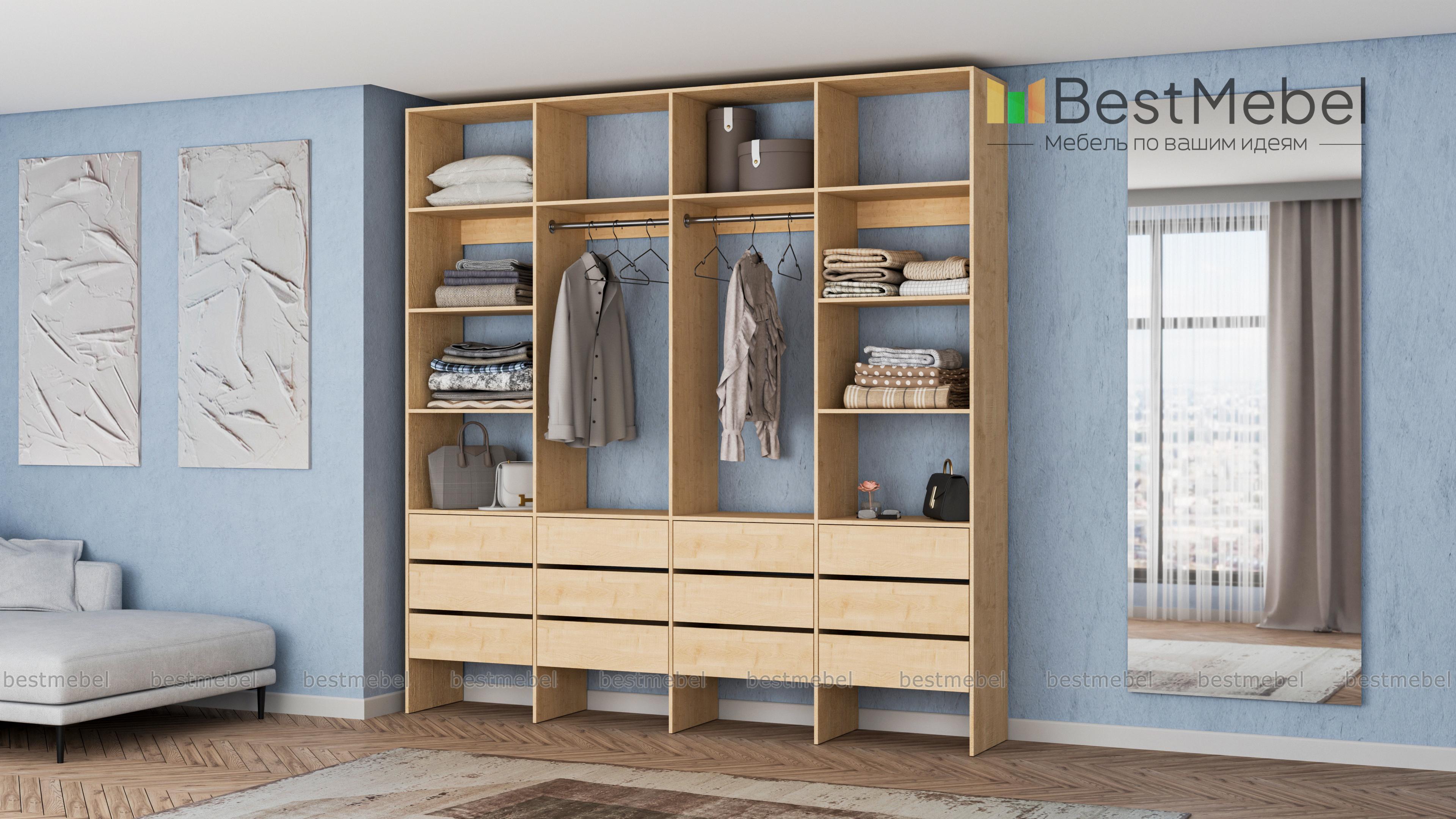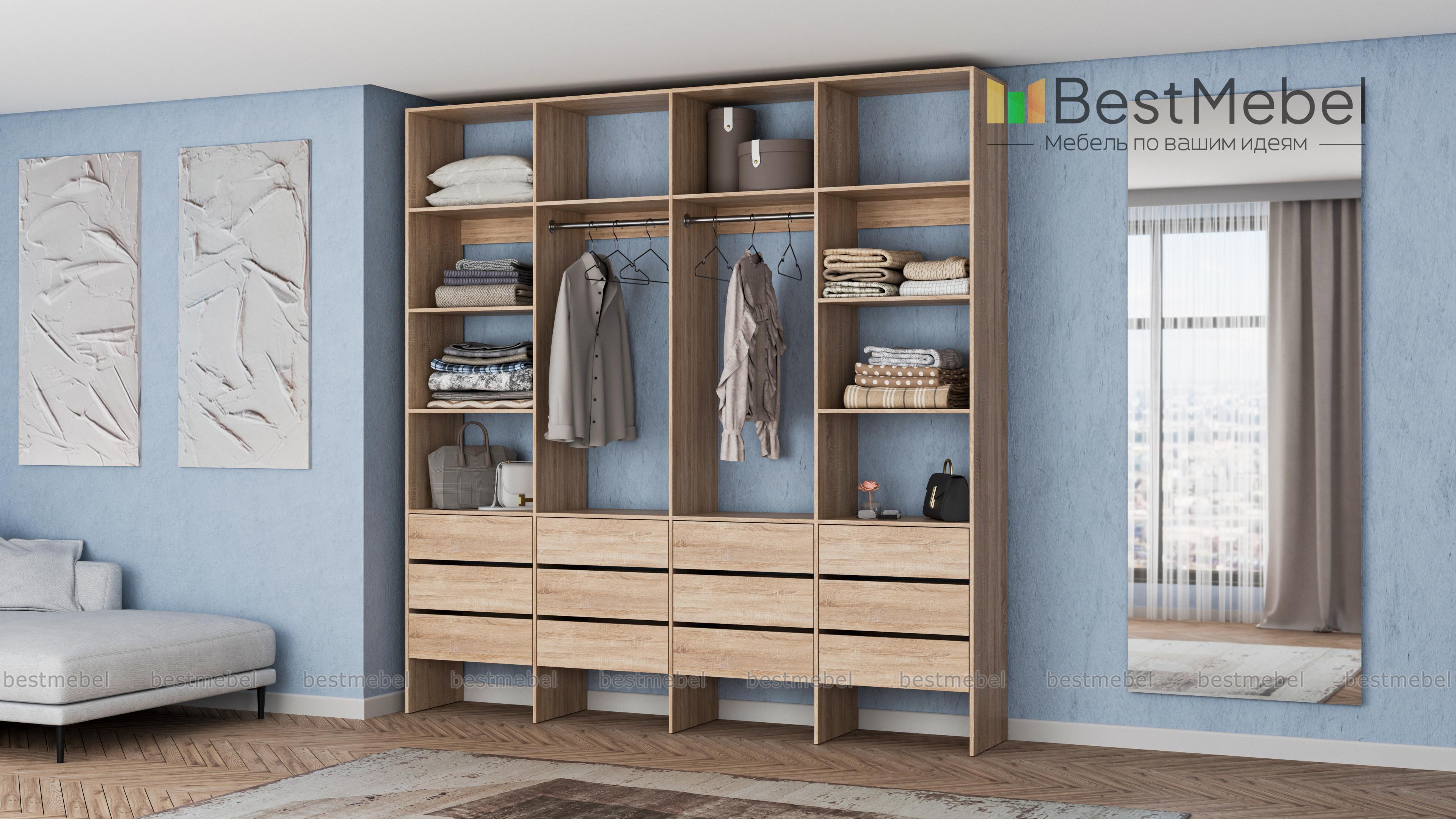 Стеллаж для одежды Мирта 64 BMS — современное решение для вашей прихожей и гардеробной. Конструкция из износостойкой ламинированной ДСП базового оттенка надежна, эстетична и доступна по цене. Практичная комбинация двух штанг, верхних и боковых полок, а также большого количества выдвижных ящиков делает хранение гардероба максимально удобным. Купить стеллаж для одежды Мирта 64 BMS вы сможете на сайте нашего интернет-магазина, подобрав по своему вкусу цвет и размеры.