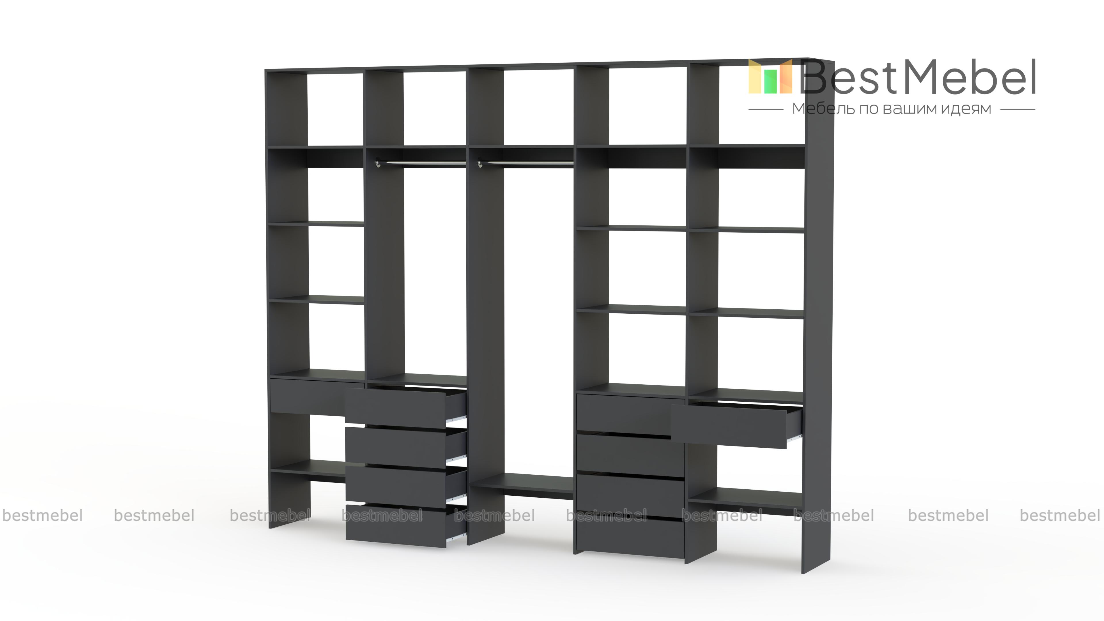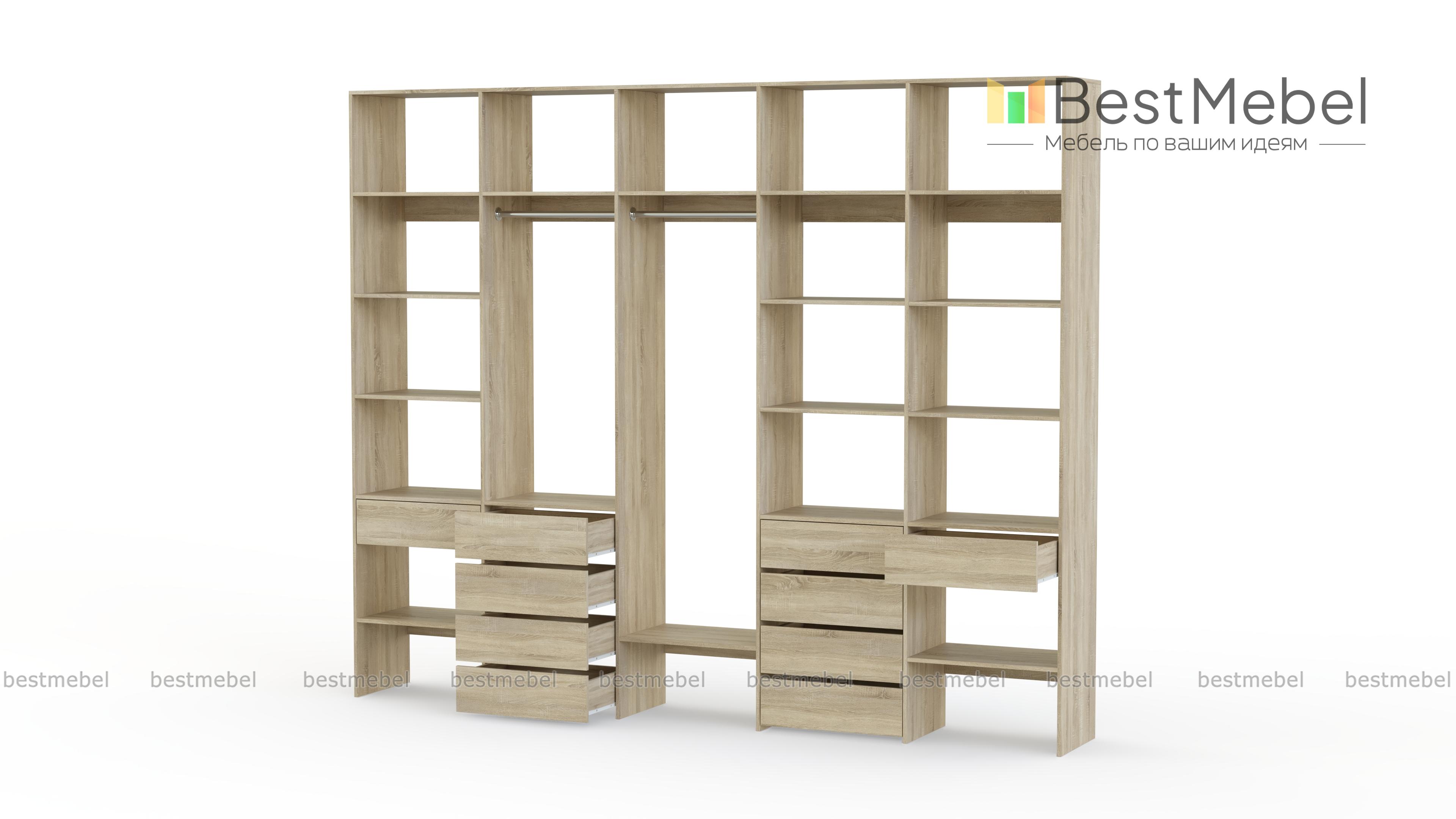 Стеллаж для одежды Мирта 71 BMS вместителен и подходит для просторных помещений. Использование ламинированной плиты делает модель недорогой, но при этом надежной и не требующей сложного ухода. Продуманная конфигурация стеллажа предусматривает платяные секции под одежду разной длины, большое количество полок и выдвижные ящики, заменяющие отдельно стоящие комоды. Купить стеллаж для одежды Мирта 71 BMS в нужном размере и гармонирующем с интерьером оттенке вы сможете в нашем интернет-магазине.