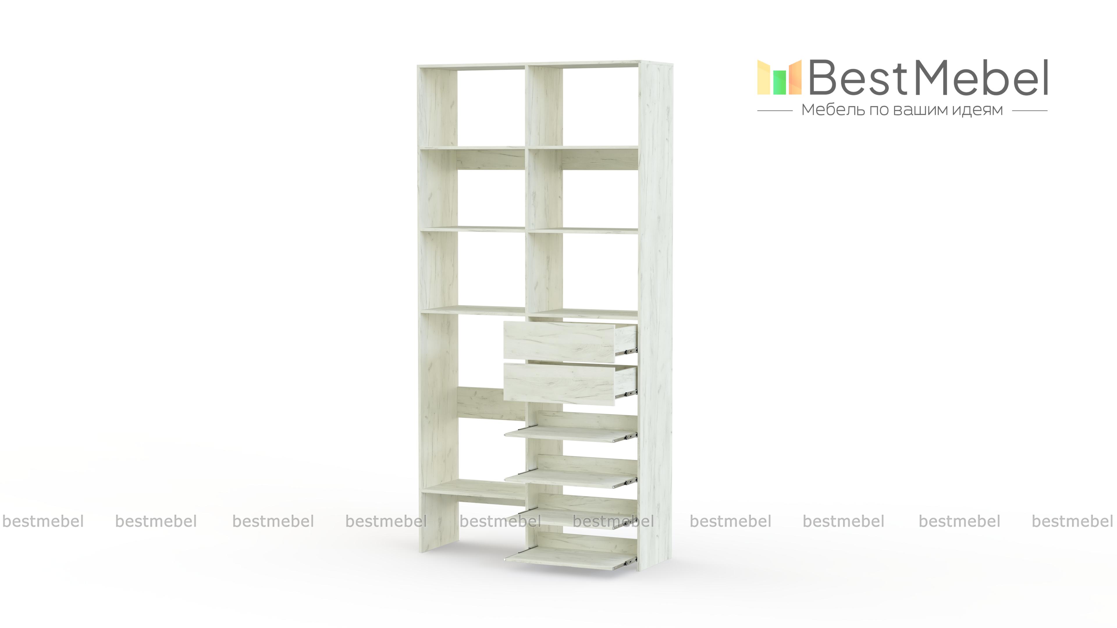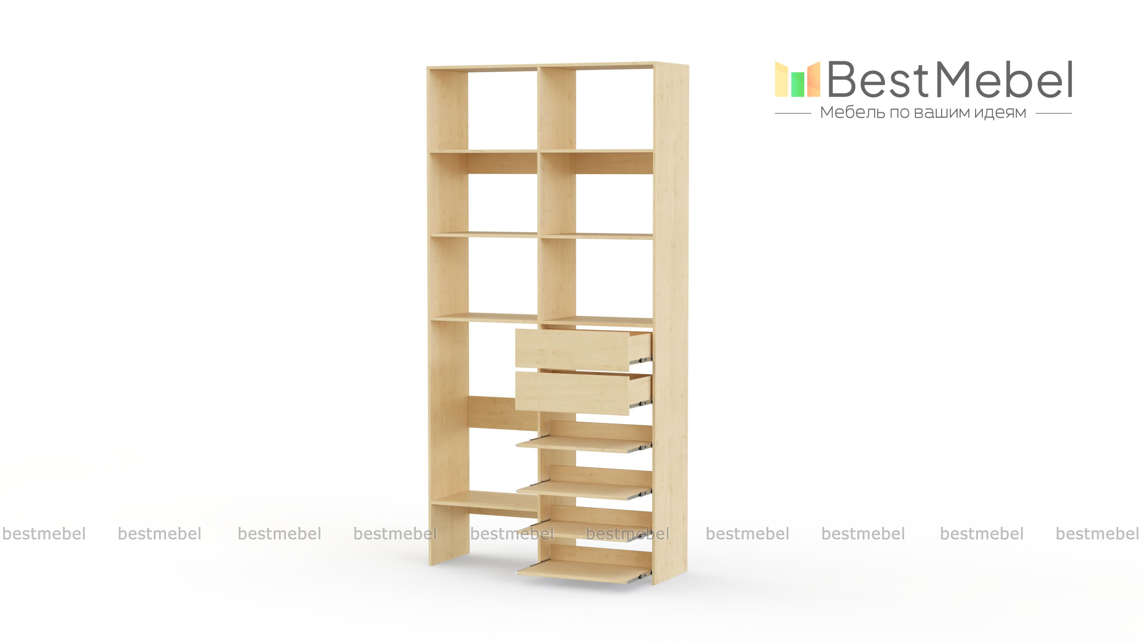 Стеллаж для одежды Мирта 86 BMS поможет вам легко избавиться от беспорядка. Секции разных размеров, два выдвижных ящика и четыре полки на направляющих прекрасно подойдут для хранения сложенной одежды, мелкого трикотажа, корзин и коробок с вещами. Благодаря скромным габаритам стеллаж легко поставить в нишу, разместить в маленькой прихожей или гардеробной. Купить стеллаж для одежды Мирта 86 BMS с выбором цвета и размеров приглашаем в наш интернет-магазин.