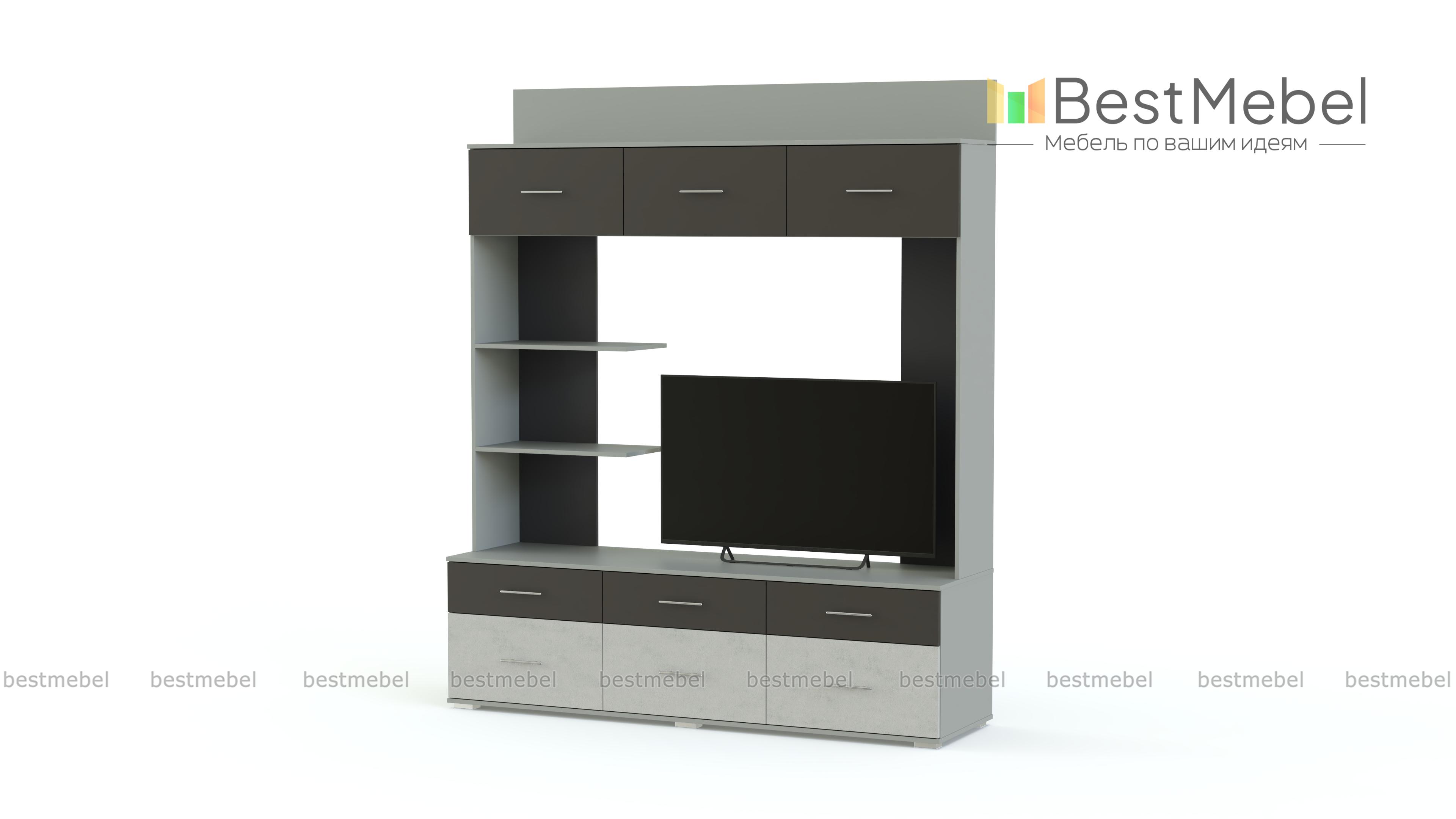 Гостиная-шкаф для ТВ Сити BMS – гибрид практичной, многофункциональной мебели. Он украшает комнату, хранит всё необходимое и позволит создать небольшой домашний кинотеатр. Конструкция состоит из девяти выдвижных ящиков. В них можно хранить бельё, а их вместительность позволяет заменить в доме шкаф. Дополнительные места создают центральные и верхняя полка. «Сердце» изделия имеет огромное пространство. Здесь предлагается организовать зону отдыха и установить телевизор со всей необходимой аппаратурой. Обратите внимание на цветовую гамму, она визуально преображает помещение и делает его комфортным. У нас, Вы можете изменить некоторые данные мебели, чтобы удачно обустроить гостиную или спальню. Купить гостиную-шкаф для ТВ Сити BMS по низкой цене можно в нашем магазине.