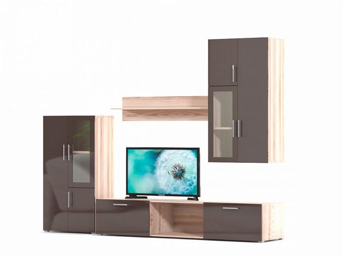 Стенка Неко 5 BMS поможет оборудовать стильную современную гостиную или студию. Модульная композиция включает в себя напольные и навесные элементы, что позволит сэкономить полезную площадь и подчеркнуть все достоинства планировки. В комплекте широкая низкая тумба под ТВ, два шкафа с витринными отделениями и открытая полка. Эффектный и актуальный вид стенке придает популярное сочетание древесных тонов и глянца. Купить стенку Неко 5 BMS для эстетичного и комфортного интерьера приглашаем недорого в наш интернет-магазин.