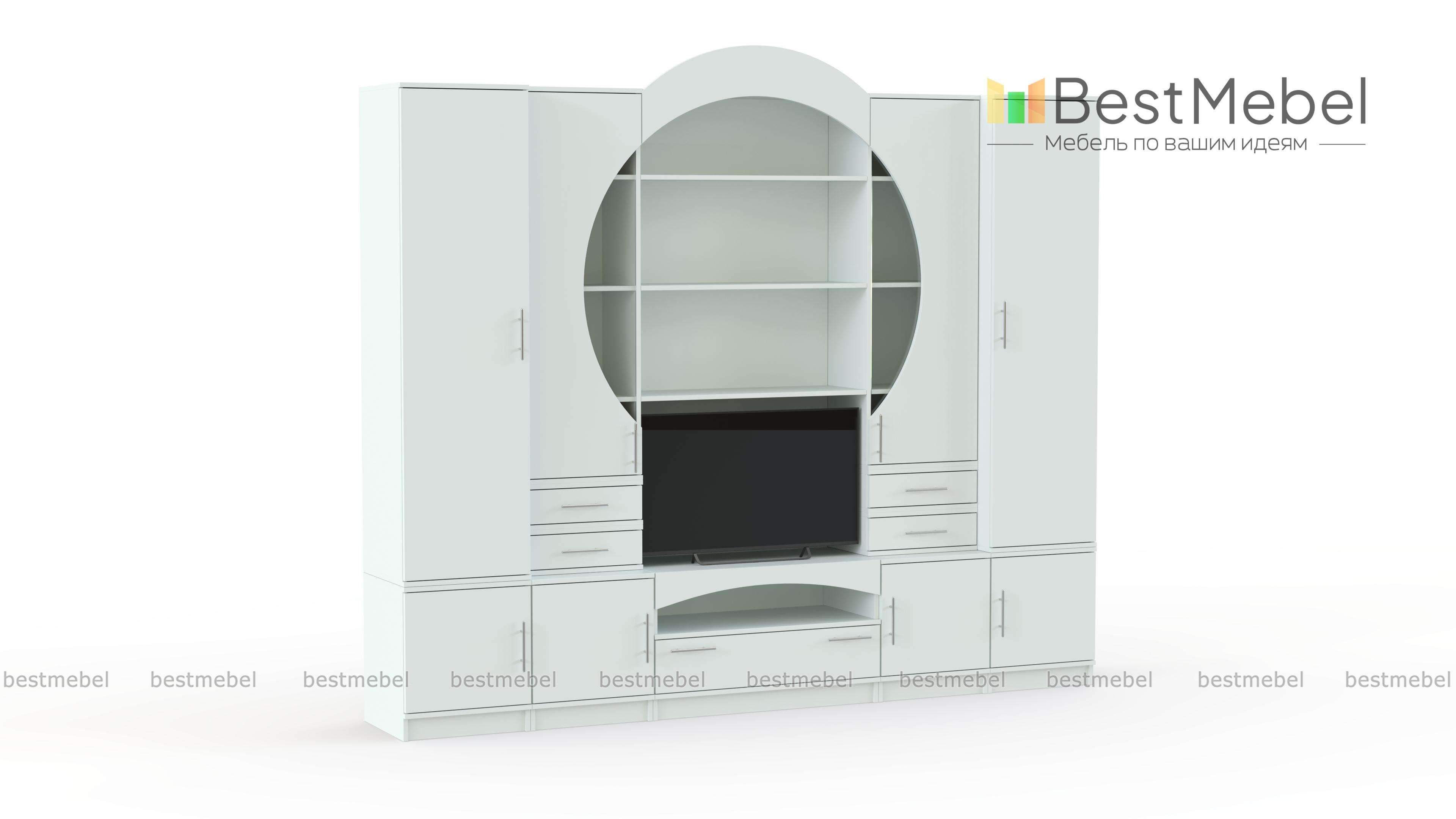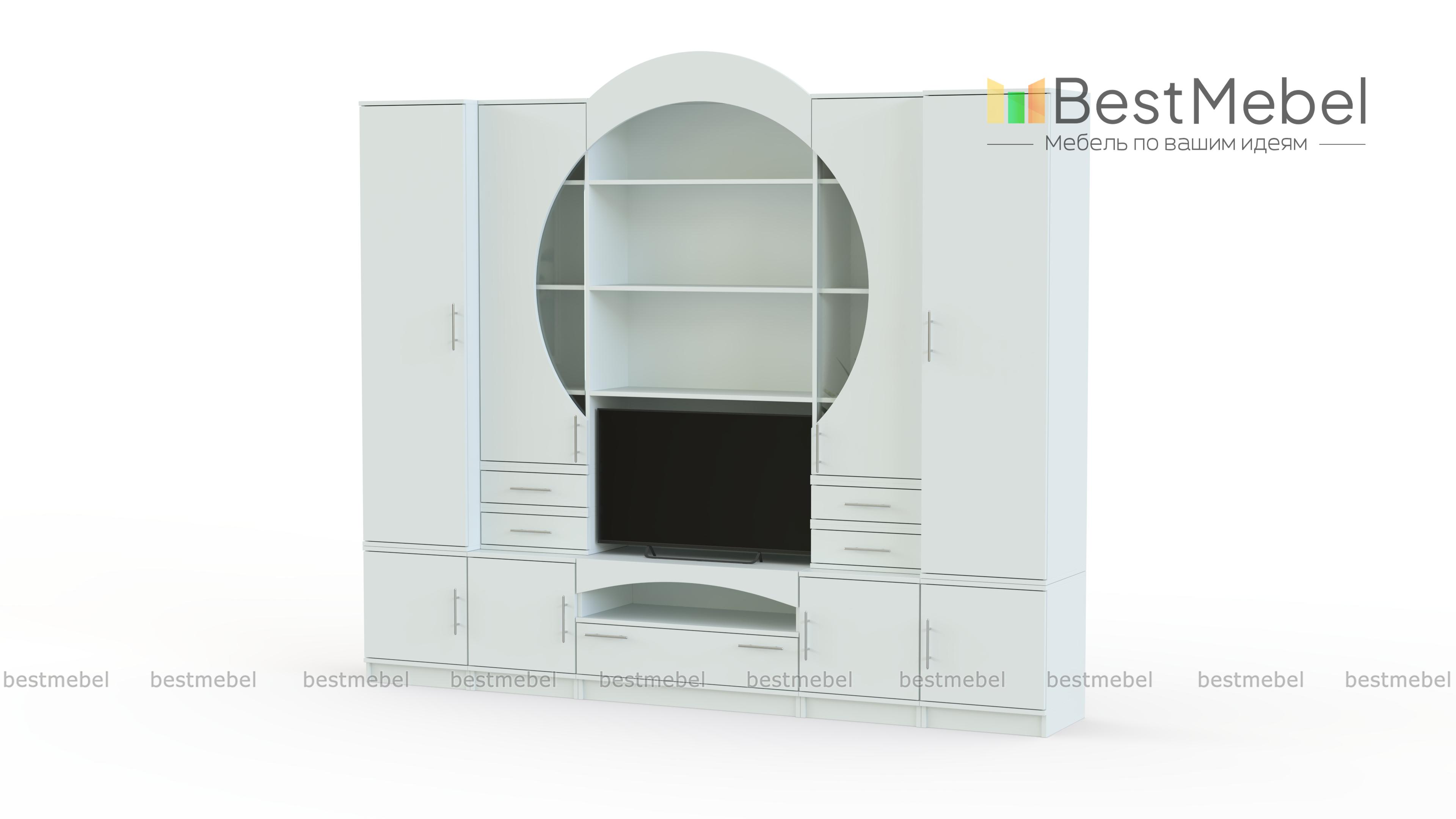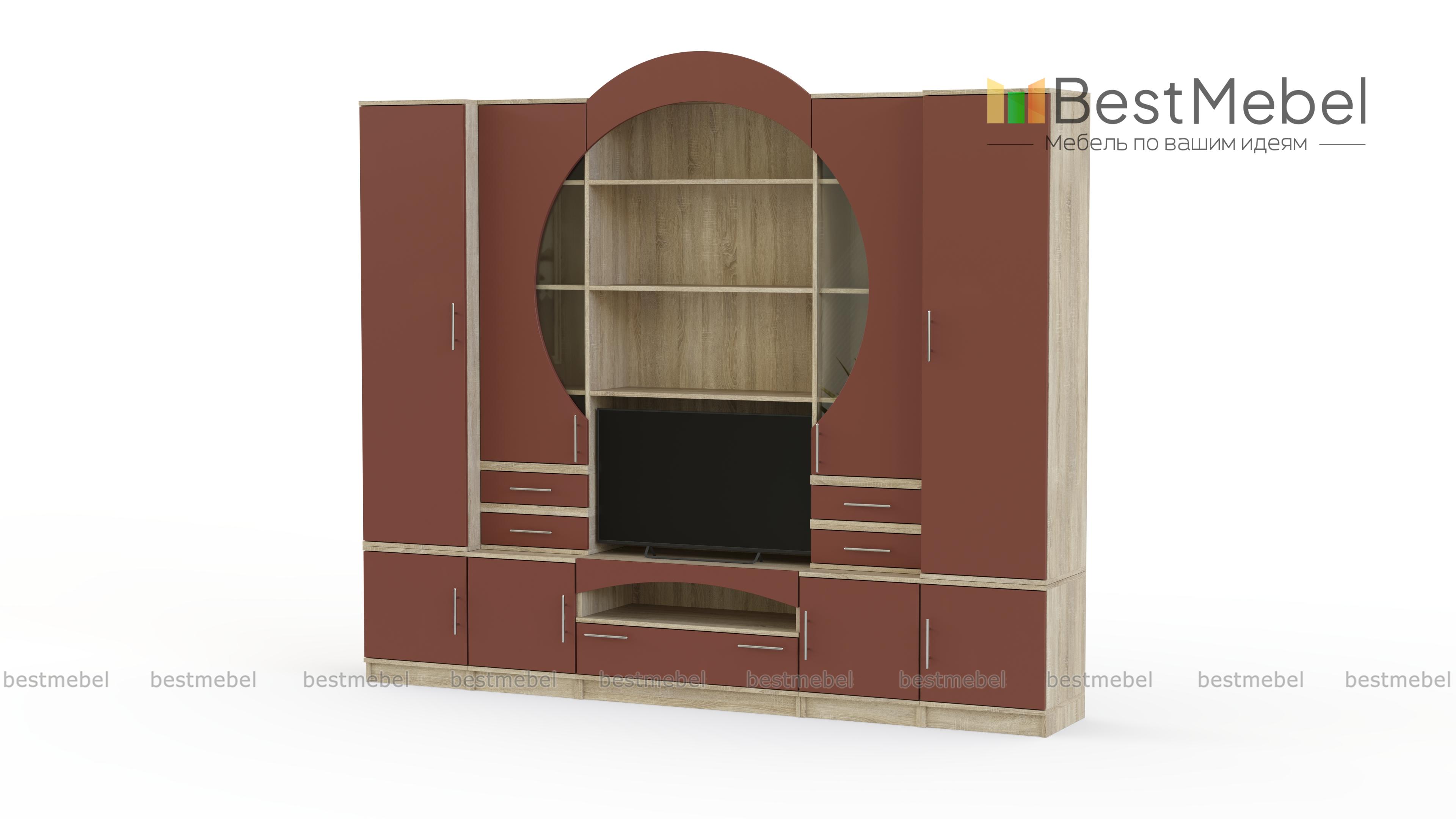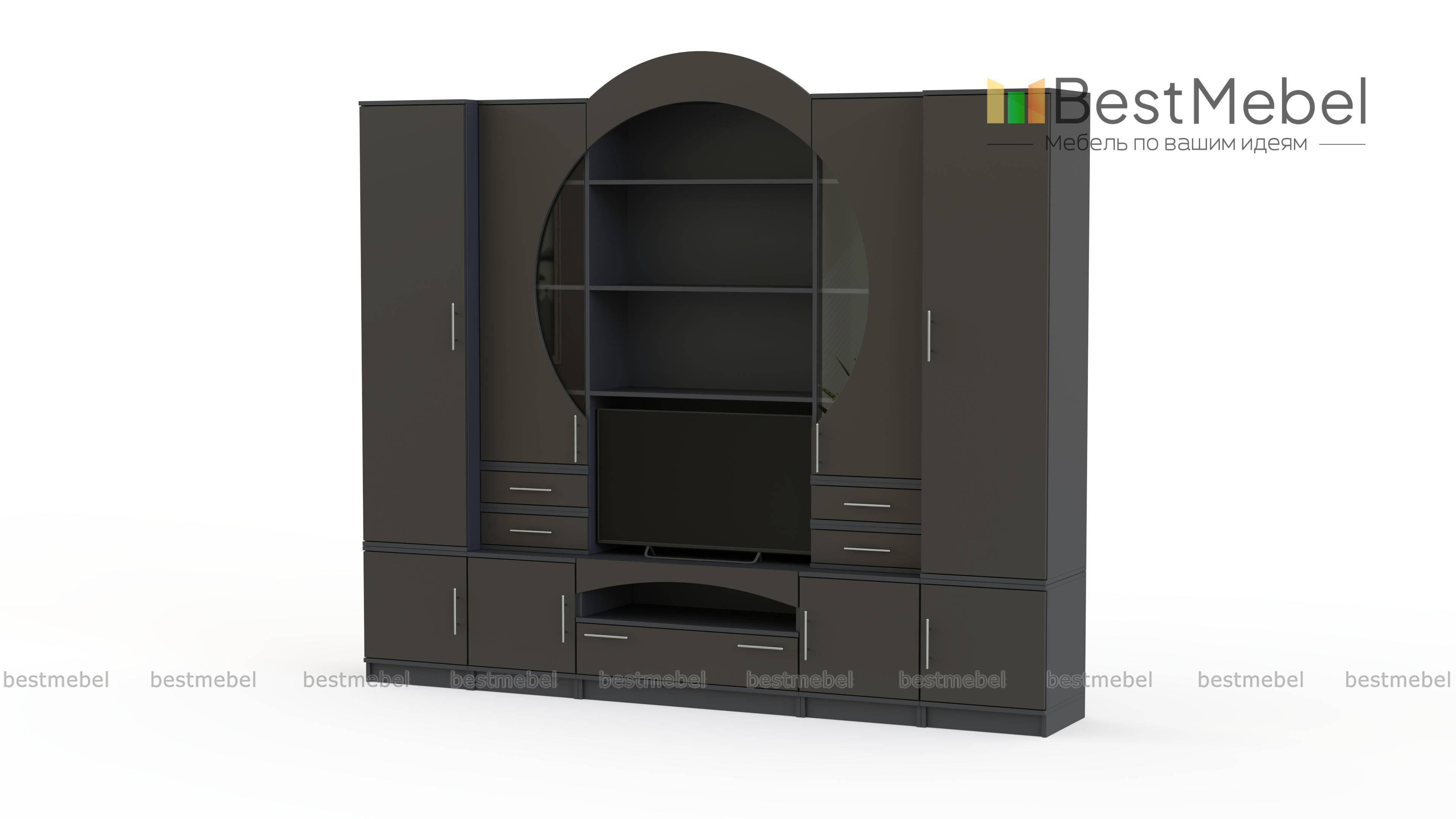 Стенка Рина 15 BMS – это элегантная композиция в стиле модерн для небольшой уютной гостиной. Эффектная и продуманная до мелочей композиция поможет вам нестандартно оформить зону ТВ и разместить домашний текстиль, книги, посуду и разнообразные бытовые вещи. Выполненная в универсальных серых тонах, стенка оборудована двумя пеналами, тумбой под аппаратуру, витринами и открытыми полками. Стеклянные вставки и декоративная накладка в верхней части визуально складываются в круг. Купить стенку Рина 15 BMS приглашаем в наш интернет-магазин.