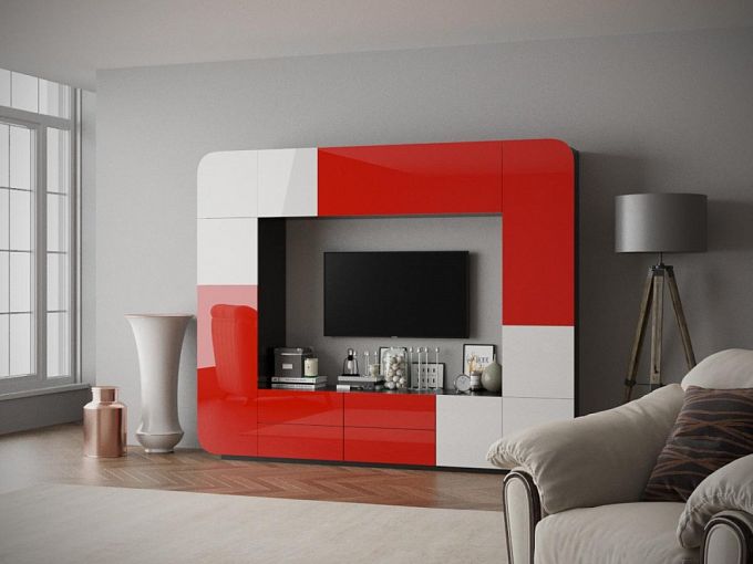 Яркая стенка Пенелопа-6 BMS, выполненная в стиле хай-тэк, принесет в вашу гостиную комфорт и позитивное настроение. Футуристичная конструкция представляет собой расположенные по периметру отдельные модули – вместительные закрытые отделения и выдвижные ящики. По центру располагается ниша для ТВ, который становится частью композиции. Фасады гостиной скруглены по краям и выполнены в контрастном глянце. Дверцы оснащены эргономичным механизмом и открываются простым нажатием.