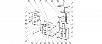 Угловой письменный стол для двоих с полками Веста 2 BMS