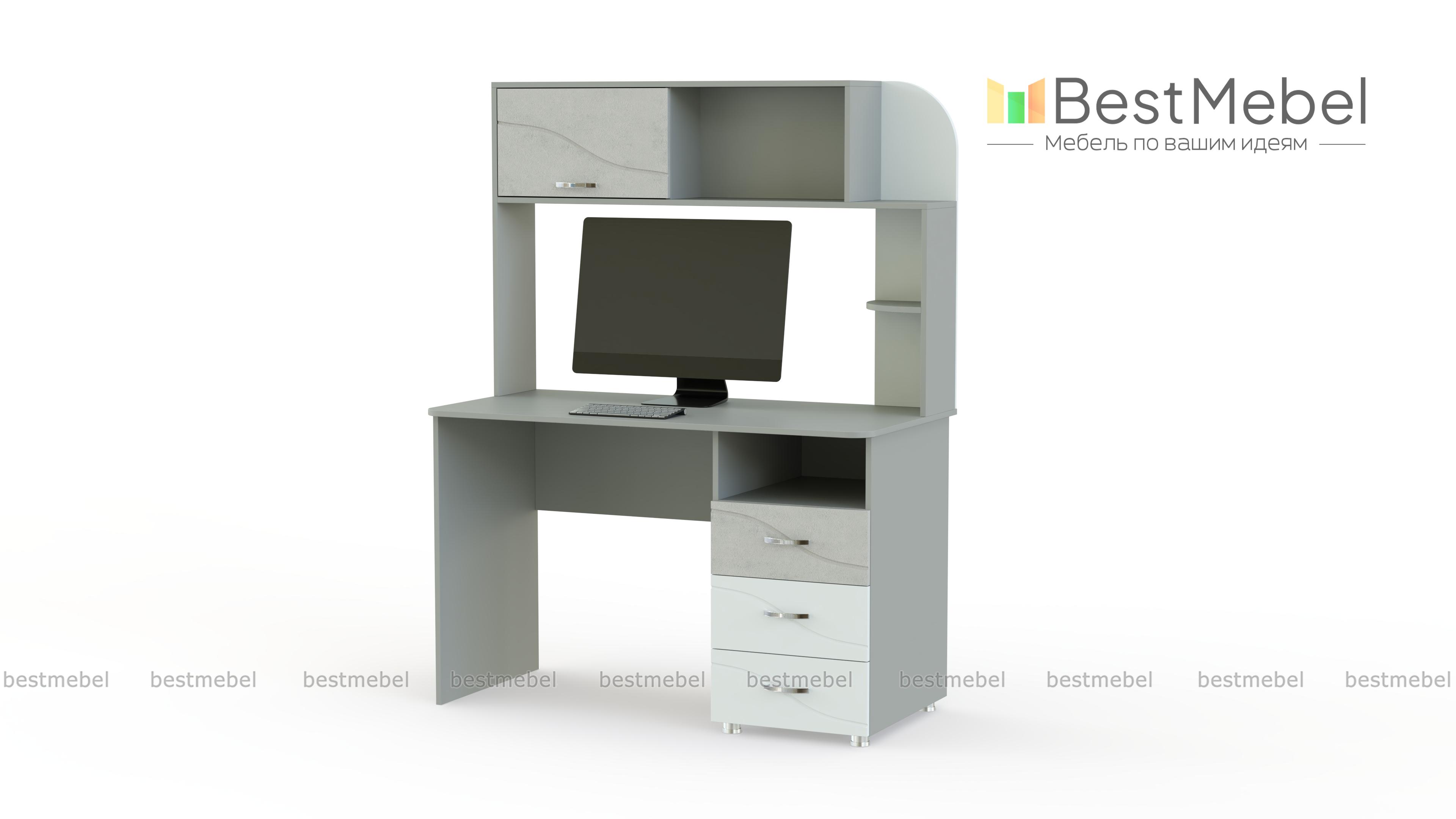 Письменный стол Розали BMS эффектно дополнит рабочее место. Если в вашем кабинете или в комнате подростка мало места, то стоит отдать предпочтение этому столу. Он оборудован не только удобной, оптимальной высоты столешницей, но и функциональной надстройкой. Она сможет заменить комод или тумбу, что значительно экономит пространство. Под столешницей тоже имеется тумба с вместительными выдвижными ящиками. Изделие оформлено в приятную цветовую гамму и дополняется цветными вставками. Купить письменный стол Розали BMS на сайте интернет-магазина можно по низкой цене.