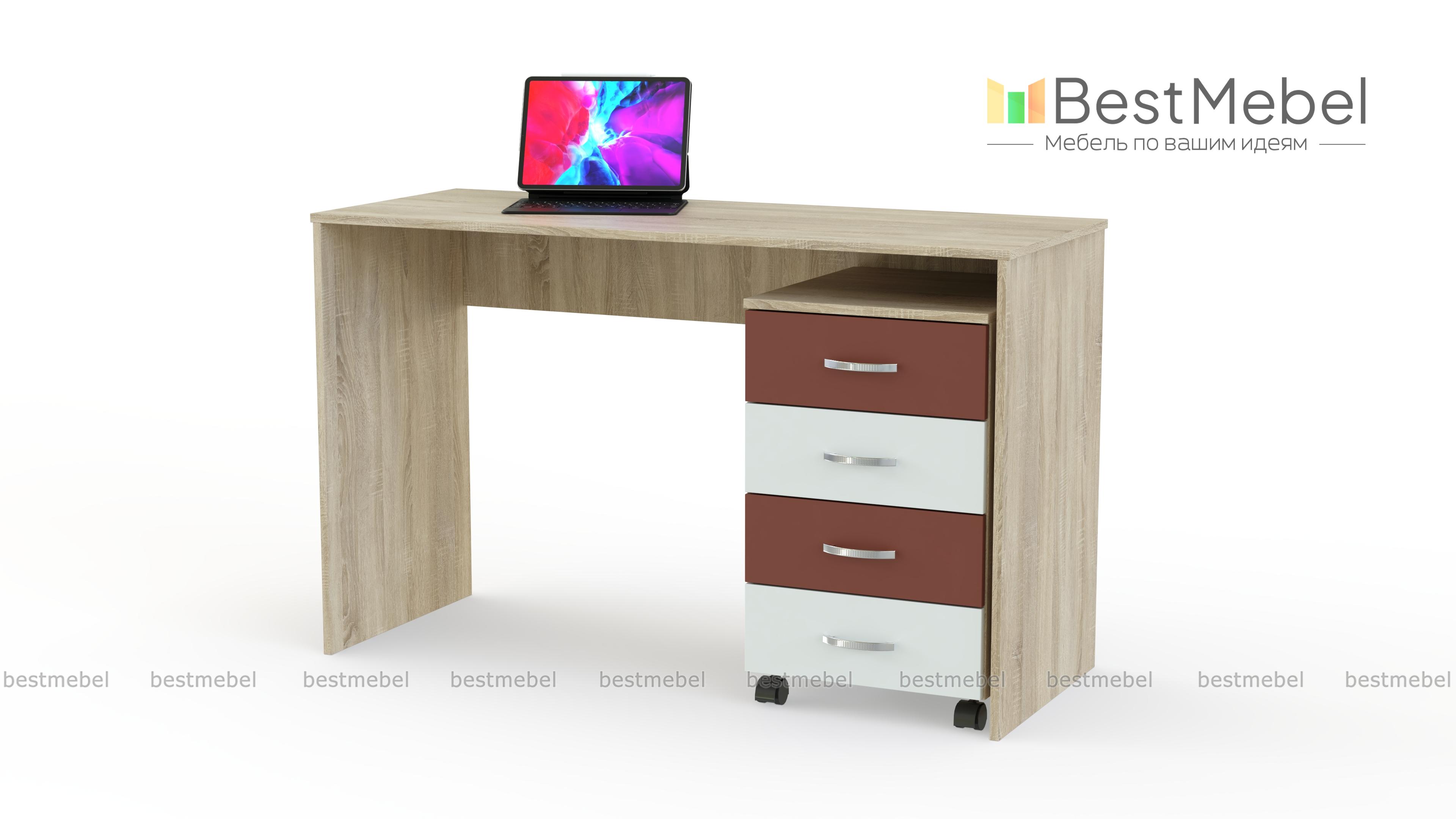 Стол Детский-5 BMS – современная модель для учебы и творческих занятий, простая и функциональная. Письменный стол с классической прямоугольной столешницей и широкими боковинами дополнен выкатной тумбой с выдвижными ящиками, которую вы сможете установить с любой стороны и разместить под рукой канцелярские принадлежности. Экологичные материалы и нейтральная расцветка в светлых тонах с контрастными вставками делают стол отличным вариантом для детской комнаты. Купить стол Детский-5 BMS вы сможете в нашем интернет-магазине.