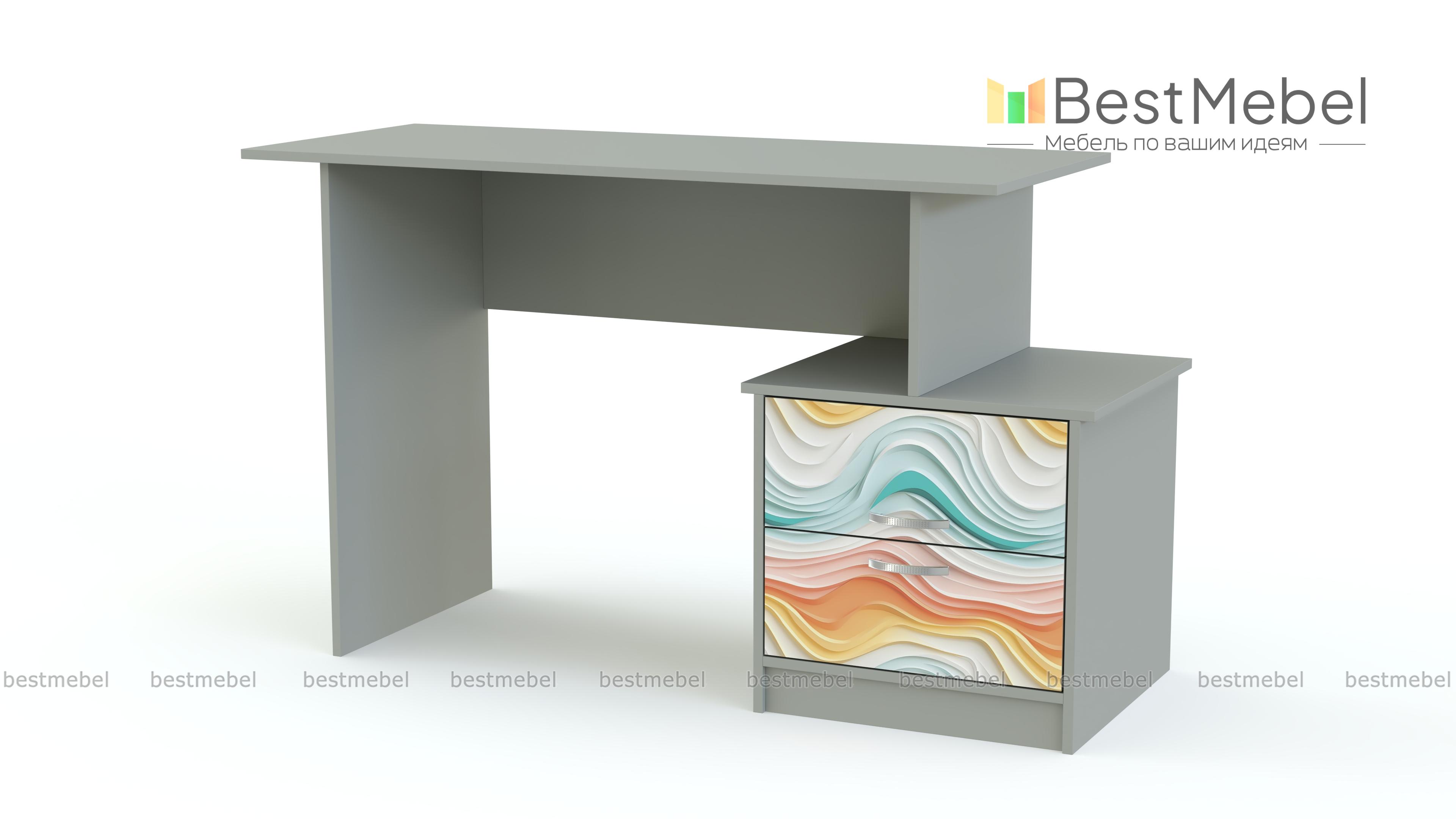 Очень симпатичный, стильный туалетный стол Кливия 641.60 BMS станет настоящим украшением комнаты. При этом изделие очень удобное в использовании. Модель имеет довольно вместительную боковую тумбочку с двумя выдвижными ящичками. Большая столешница позволит разместить с удобством множество косметических средств, которые необходимо иметь под рукой. Вы можете купить туалетный стол Кливия 641.60 BMS в нашем интернет магазине, самостоятельно выбрав нужный Вам цвет и указав оптимальные для Вас размеры.