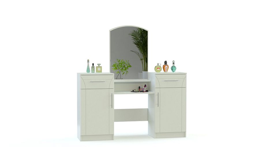 Туалетный столик Экстаза BMS выполнен в классическом стиле с использованием белых оттенков и органично впишется в любую спальню. Фасады из прочного материала дополнены оригинальной фрезеровкой, придающей визуальную легкость конструкции. Фигурное зеркало создаст комфортные условия для нанесения макияжа, а выдвижные ящики и распашные отделения позволят разместить все нужные уходовые средства в полной доступности. Купить туалетный столик Экстаза BMS по лучшей цене приглашаем в наш интернет-магазин.