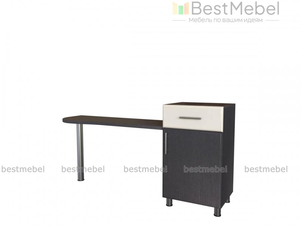 Туалетный столик Мелисса СТ 114 BMS станет приятным дополнением интерьера современной спальни. Конструкция представляет собой комбинацию изящной столешницы с эргономичным передним краем и вместительной тумбы. Оборудованная выдвижным ящиком и распашным отделением с полкой, тумба позволит хранить под рукой все необходимые аксессуары и уходовые средства. Стильные элементы дизайна – фасады и хромированные опоры. Купить туалетный столик Мелисса СТ 114 BMS вы сможете недорого в нашем интернет-магазине, подобрав цветовое решение.