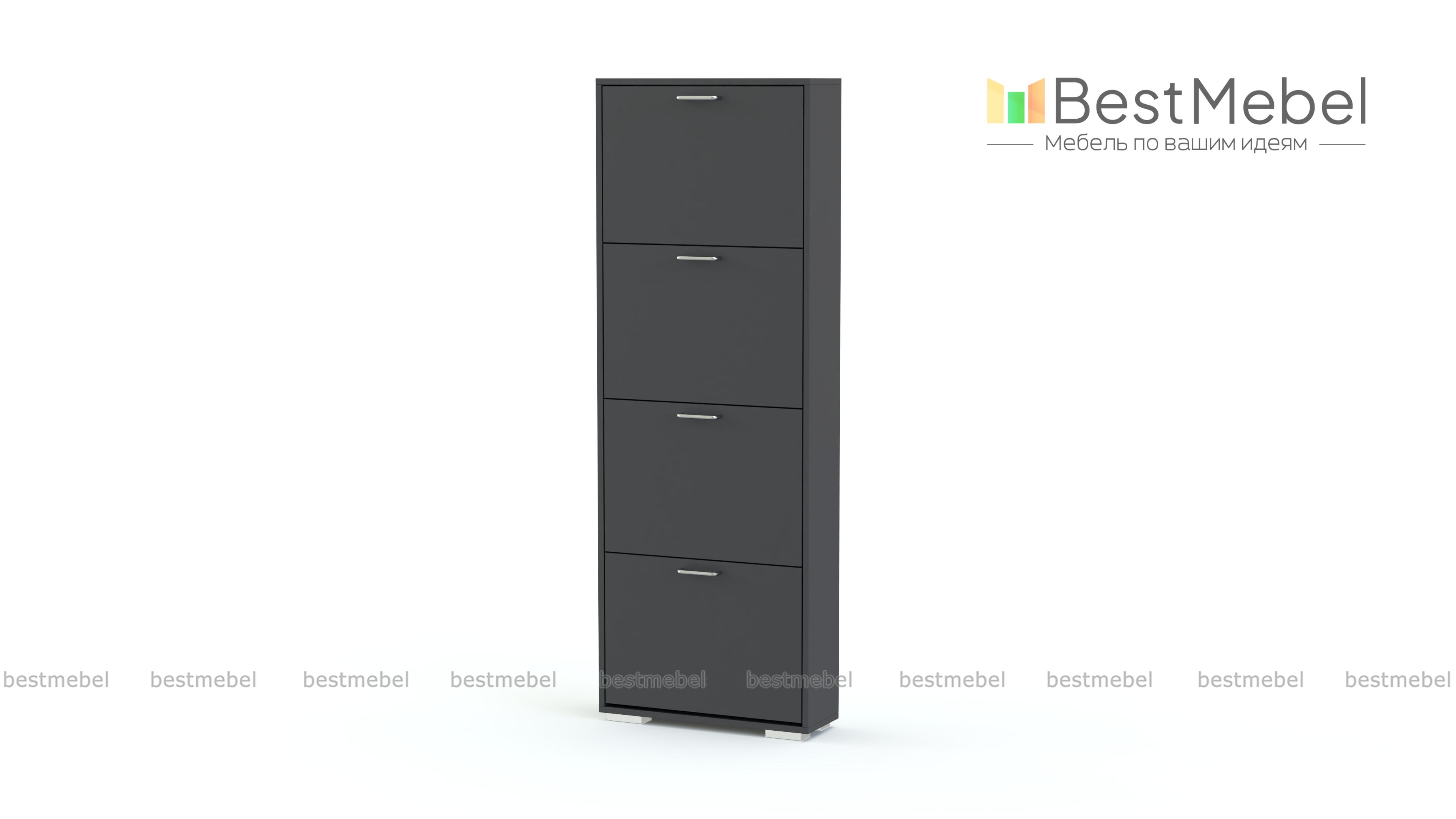 Обувница Анри 3 BMS отличается хорошей вместительностью при компактных размерах и универсальным современным дизайном. Четыре отделения откидной конструкции легко разместят всю повседневную обувь даже в небольшом помещении. Высокая напольная тумба из ламинированной ДСП — прочная, надежная и недорогая, на гладкие фасады установлены удобные ручки-скобы. Купить обувницу Анри 3 BMS в любом размере и оттенке из каталога приглашаем к нам в интернет-магазин.