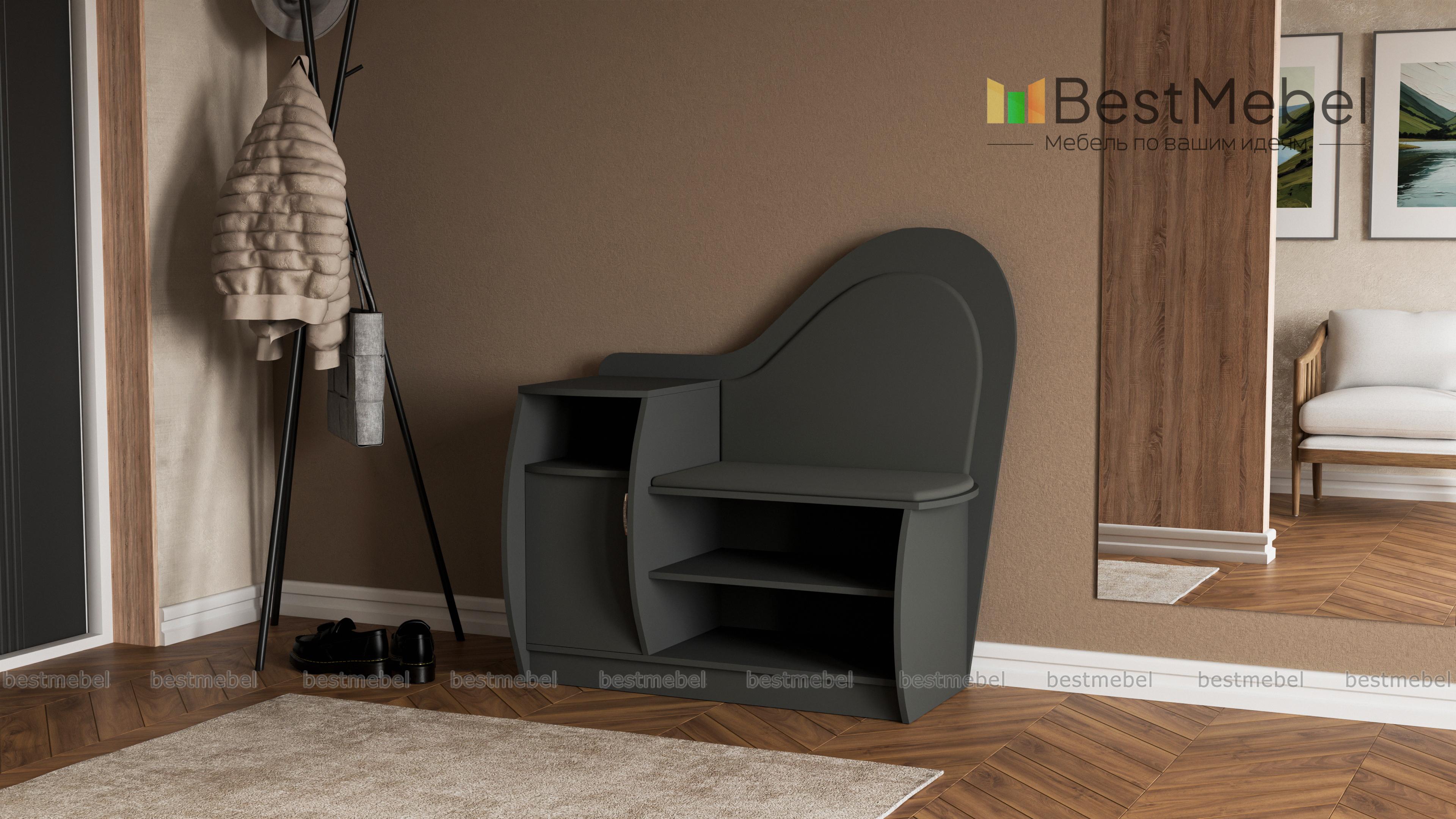 Очень красивая и удобная тумба для обуви. Выбрали цвет корпуса и обивки, а также размер, подходящие под нашу прихожую. Все изготовили в срок, аккуратно доставили и собрали.