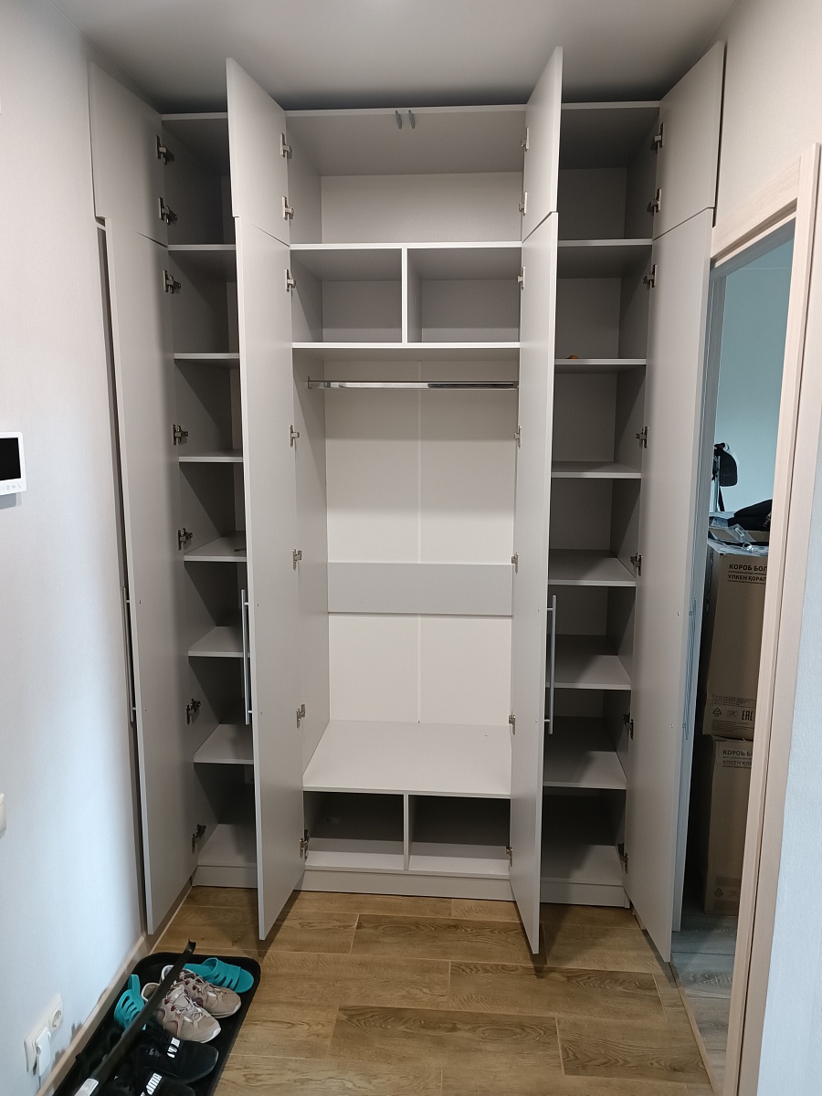 Внешний вид оцените сами, сама возможность подобрать размеры под себя - круто. Качество изделия оцениваю как такое себе. Водитель привез всё целое, не возражал, если будет проверка. В то же время ссылался на некий договор, в котором написано, что не принять товар нельзя, можно лишь обращаться потом долго и нудно, чтобы кто-то что-то чего-то там. По факту никакого договора никто не подписывал.Но нам повезло, повреждений не было. Инструкция к товару настолько ничтожна, что можно считать ее оскорбительной по отношению к покупателю. В электронном виде по QR-коду конечно же ничего нет. Тем, кто будет покупать этот шкаф, дам совет: не снимайте сразу наклейки со стенок, они подписаны, по ним и будет сборка. Иначе замучаетесь подбирать что и куда соединять. Прикладываю фото наклейки.Почему только пять фотографий можно приложить?!