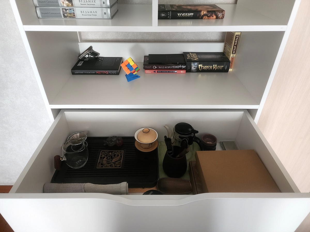 Именно этот дизайн стеллажа подошёл по моим надобностям. И что я получил в итоге?Перво-наперво, сборка была не такая простая и понятная. Инструкция в комплекте непонятная от слова совсем, благо был QR-код на 3D модель. Т.е. после сборок мебели от Ikea очень сильно отличается инструкция.Зазоры. В некоторых местах заметны небольшие просветы, даже после того как многие получилось подтянуть.И последнее плохое, то-ли при доставке, или изначально: на стойке есть след дефекта как-будто провели чем-то острым, но след неглубокий (которую расположил плохой стороной к шкафу). Это мелочи, но не приятно.К хорошему Удобства конструктора на сайте. Ты можешь буквально всё изменить, а потом ещё и запросить объёмный вариант, чтобы представлять что получится в итоге. Добавить другие направляющие, подсветку и т.п.Поддержка на уровне, на всех этапах помогала решить все нюансы.В общем и целом, рекомендую, если готовые варианты у других производителей не устраивают!