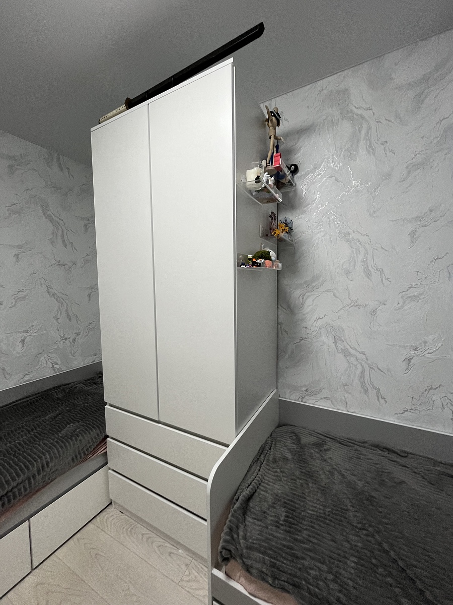 Заказали эту стенку дефолтного цвета, но не стандартной высоты и глубины, также убрали двойной шкаф и добавили одинарный. С эскизом конечно затянули, но изготовили и доставили быстро. Что порадовало: на каждой детали наклейка с номером детали, достаточно удобная интерактивная схема сборки. Проблем со сборкой практически не было, за исключением незначительных ошибок при проектировании. В целом мы очень довольны мебелью. Менеджерам и всему персоналу спасибо!