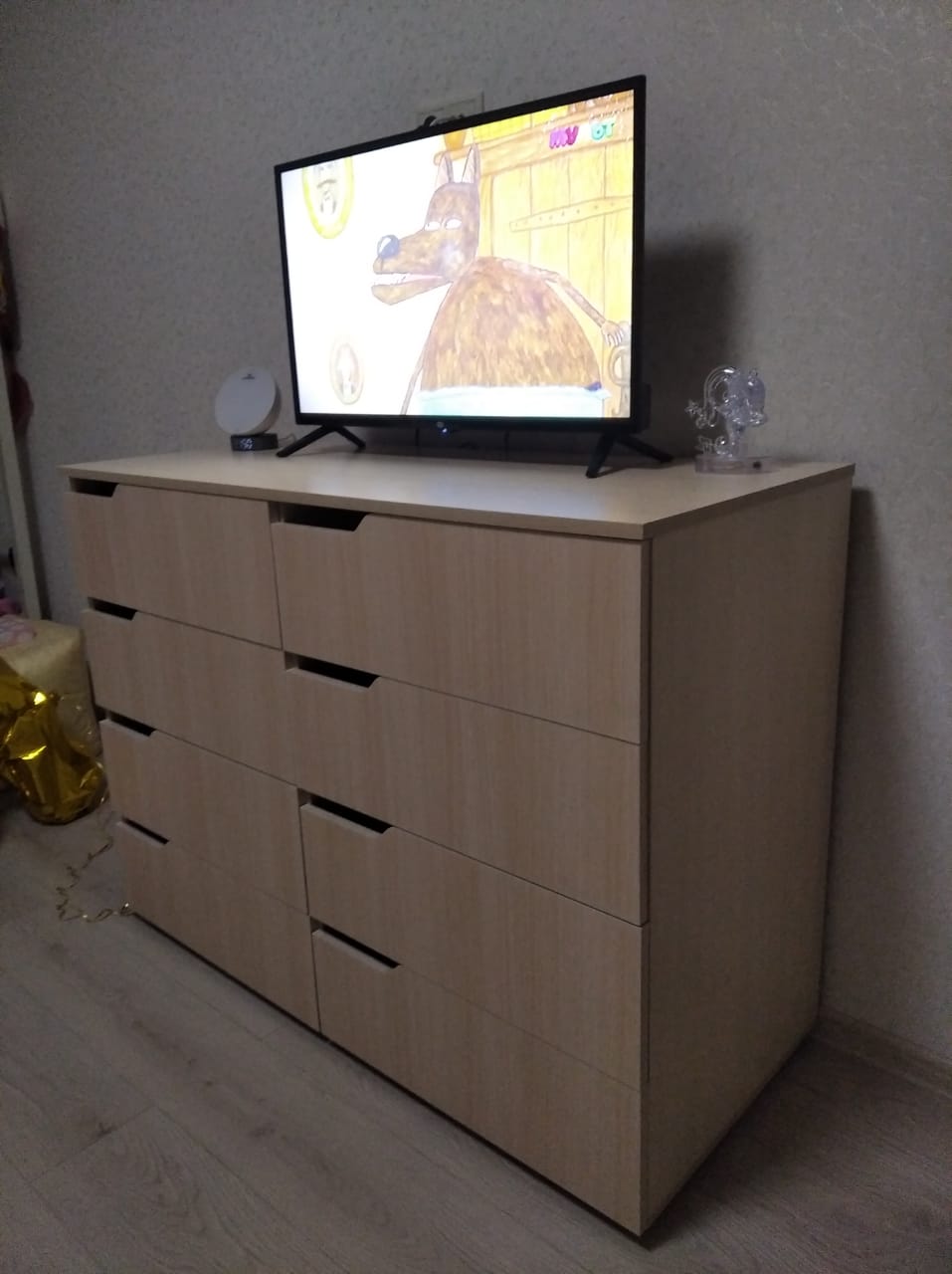 Заказали комод для детской (Заказ №407678) в цвет остальной мебели. Очень вместительный. Дополнили направляющими с доводчиками. А чтобы дети ни за что не цеплялись, при заказе указали вырезы на ящиках вместо ручек. Детали все качественные, крепежные отверстия все совпадают. Спасибо. Будем заказывать еще.