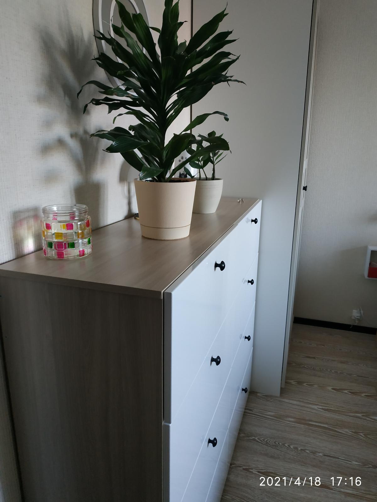 Заказ на комод оформила 12.04.2021. Доставку согласовали на 18.04.202021.Комод отличный, большой. Собирали сами, проблем не возникло. Всё сделано качественно, разметка присутствует. Единственный "косяк" - в пакете не хватало некоторых метизов, хорошо что остались от других заказов.