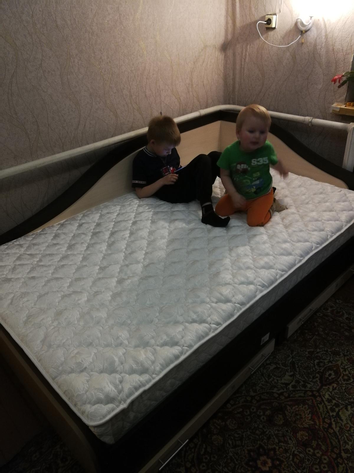 Красивая, удобная кровать, особенно радует боковая спинка, где стоит кровать вдоль стены протянуть трубы отопления, вследствие чего проваливаешься в расстояние между кроватью и стеной, приходилось раньше набивать одеялами. Теперь просто здорово, все цевилизовано. Кровать кажется прочной, матрас 17 см визуально делает кровать наравне с диваном, боковины кровати спального места не упирается в ноги, не садишься на них не больно ноги. Кровать прошла тестирование прыганием на ней детей:)
