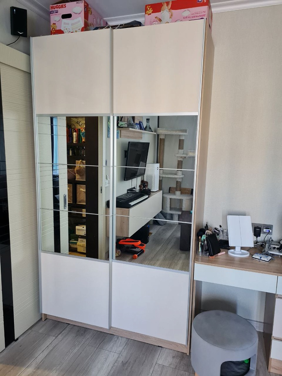 Шкаф понравился, красивый, функционаотный. Провозились с механизмом дверей купе, не хватает более подробной инструкции сборки. Рекомендуем заказывать двери с доводчиками, т.к. двери закрываются с ударом.Заказ 00000108278, Шкаф-купе Multy BMS