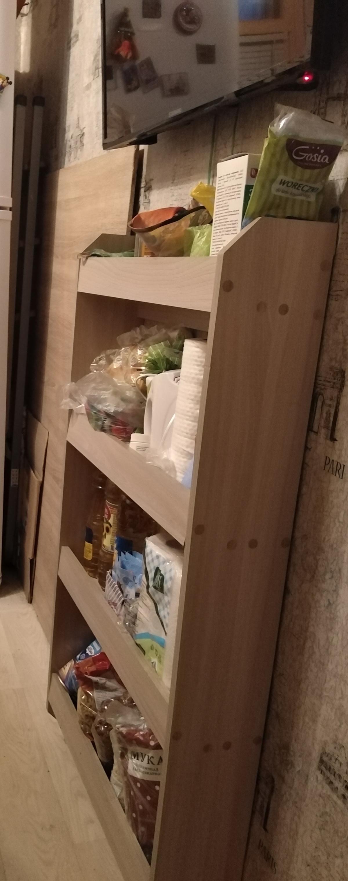 Заказ 00000445398, изделие Полка Л-04 BMS (630х1130х150).Заказали замечательную полку для кухонного хлама, которая чудесно влезла под телевизор. Совершенно не мешает проходу. Хранит в себе массу нужностей. Доставка и качество устраивают.Буду заказывать ещё одну такую.