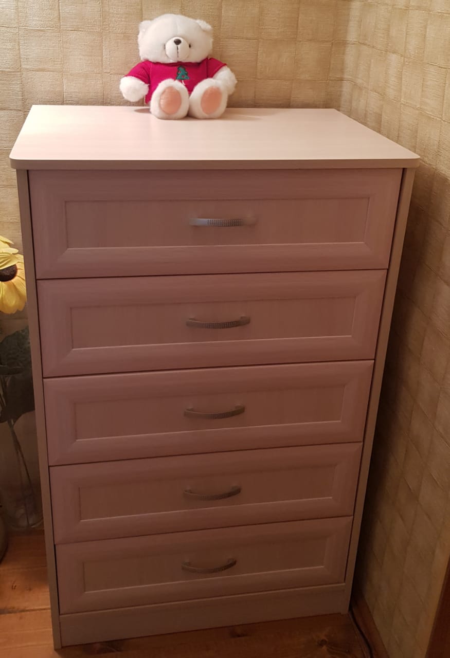 Купили у Вас комод. Очень понравилось, что можно выбрать необходимое количество ящиков и нужный размер комода. Из предложенных цветов мы выбрали понравившийся цвет. Качество изготовления очень хорошее, все собралось быстро и без проблем. Выбранный нами цвет полность совпал с цветом на картинке. Мы очень довольны.