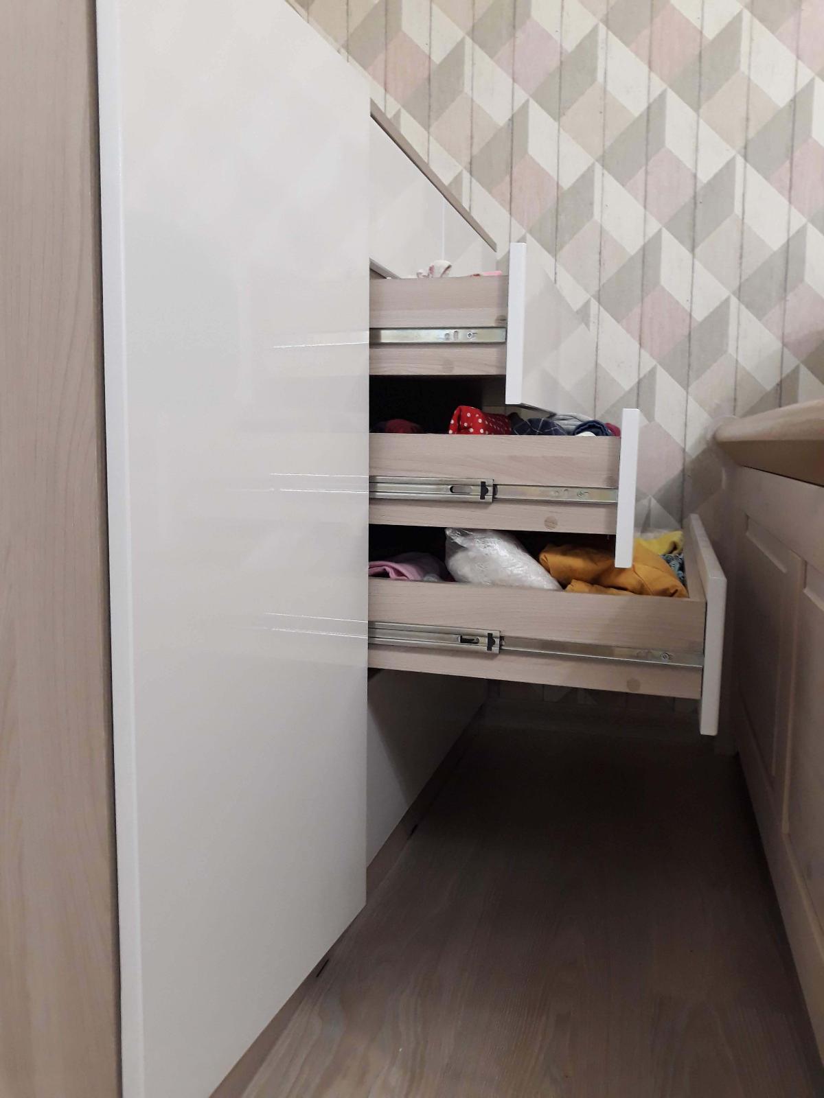 Несколько месяцев назад заказали Шайн 21 глянцевый комод  BMS (1300х990х500). Заказ оформляли онлайн, сайт очень удобный, можно самостоятельно выбрать материал корпуса, фасадов, крепеж и др. параметры. При оформлении подписки нам предоставили скидку. Что касается самого комода- покупкой мы довольны. Комод очень вместительный, хорошо смотрится в интерьере. Специально выбирали комод без ручек, т.к. есть маленький ребенок, который открывает все шкафы, здесь у ребенка такой возможности нет (чему я очень рада)))). Единственный минус - необходимо периодически подкручивать систему push-кнопок, иначе ящики могут сами открываться.Что касается доставки- все привезли очень быстро, сборку не заказывали, собрали комод самостоятельно, особых проблем по поводу сборки не возникло.