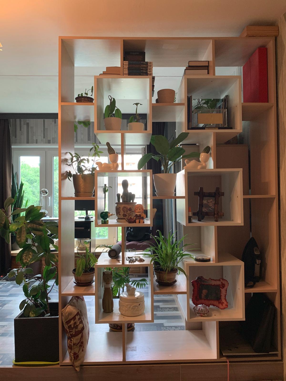Покупали пол года назад для разграничения пространства, цветов и всякой мелочи. Цвет подобрали под остальную мебель, ширину увеличили на 10см, собрали очень быстро и приемлемую цену. Хочу отметить что жена поливает цветы аэратором вместе с полками с момента, как ее установили, ничего не отслаивается и не набухает,  покупкой довольны и всем советуем! Спасибо!